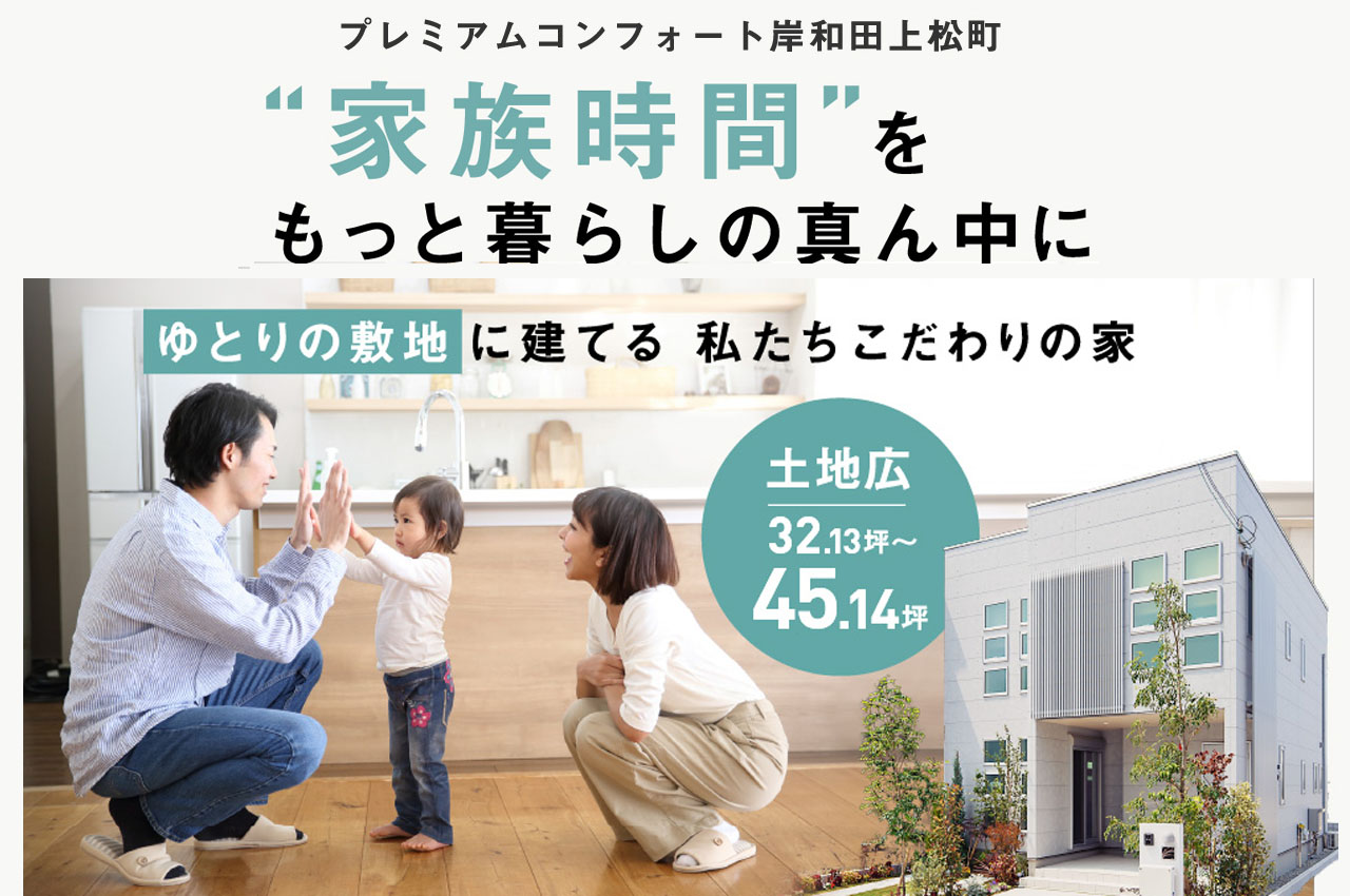全邸約32坪~約45坪のゆとりある13区画。プレミアムコンフォート岸和田上松町