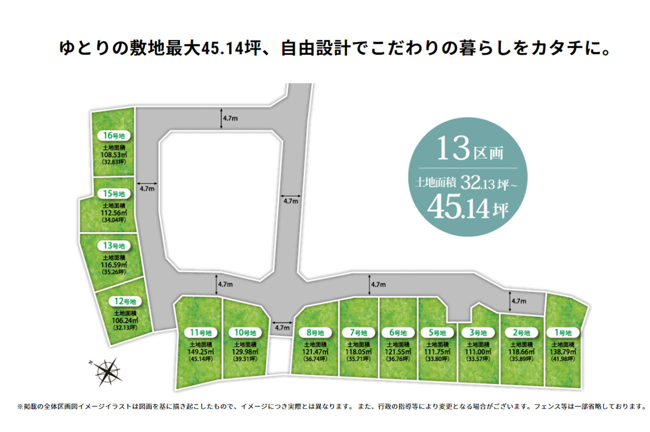 ・全邸約32坪~約45坪のゆとりある13区画