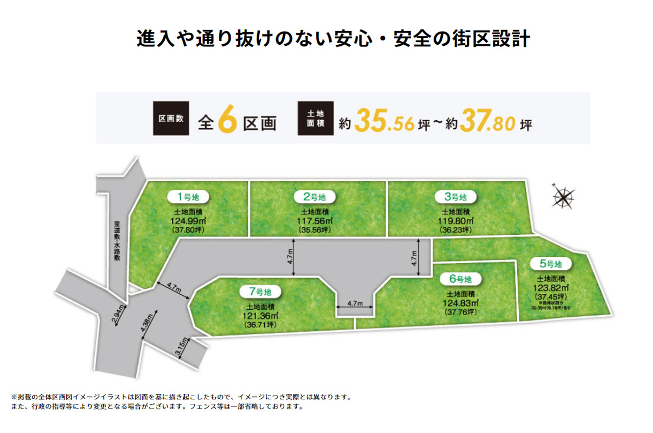 全6区画、敷地面積35坪超!進入や通り抜けのない安心・安全の街区設計