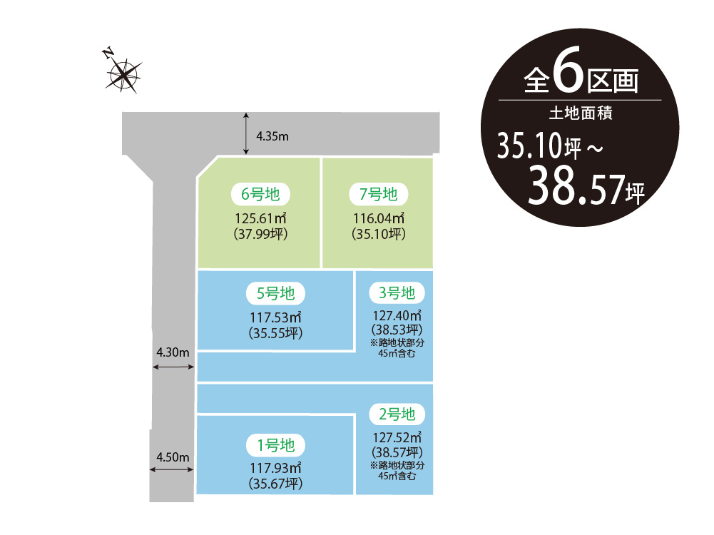 敷地面積最大38坪超!整形地を含む、全6区画の新街区です。