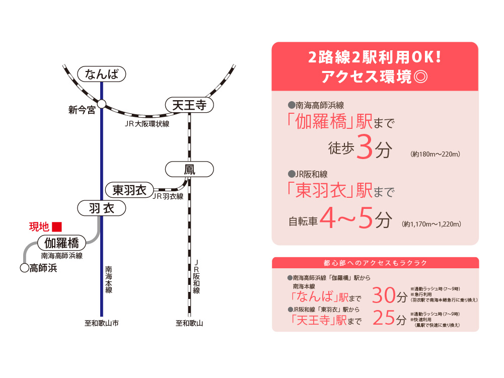 南海高師浜線「伽羅橋」駅まで徒歩3分!2沿線2駅利用可能。