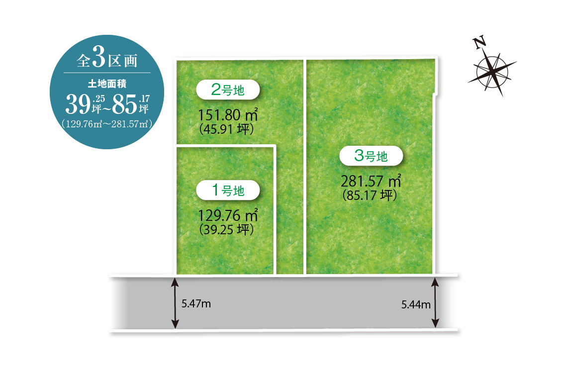 敷地面積39坪~85坪超!×自由設計!ゆとりある全3区画!