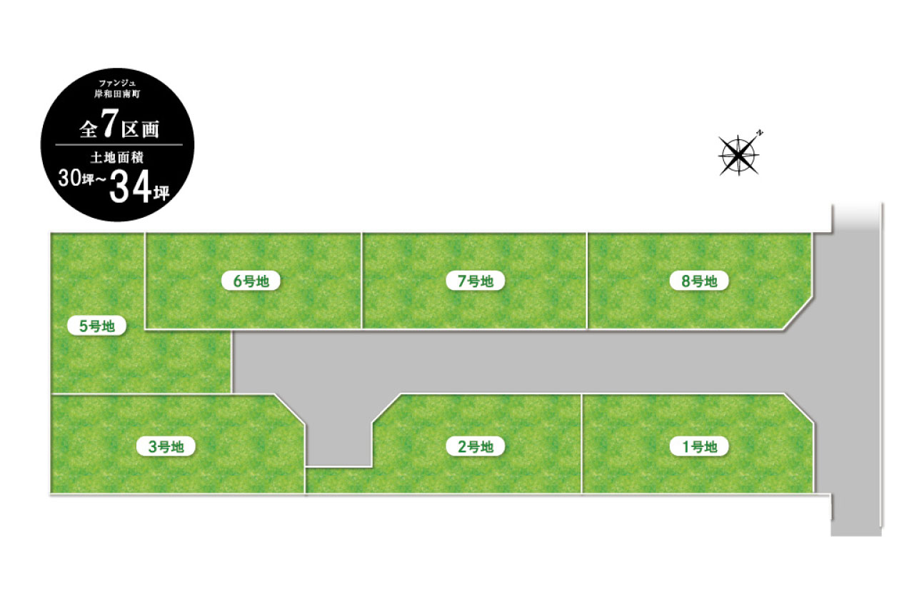 ・全区画30坪超、角地を含む全7区画。