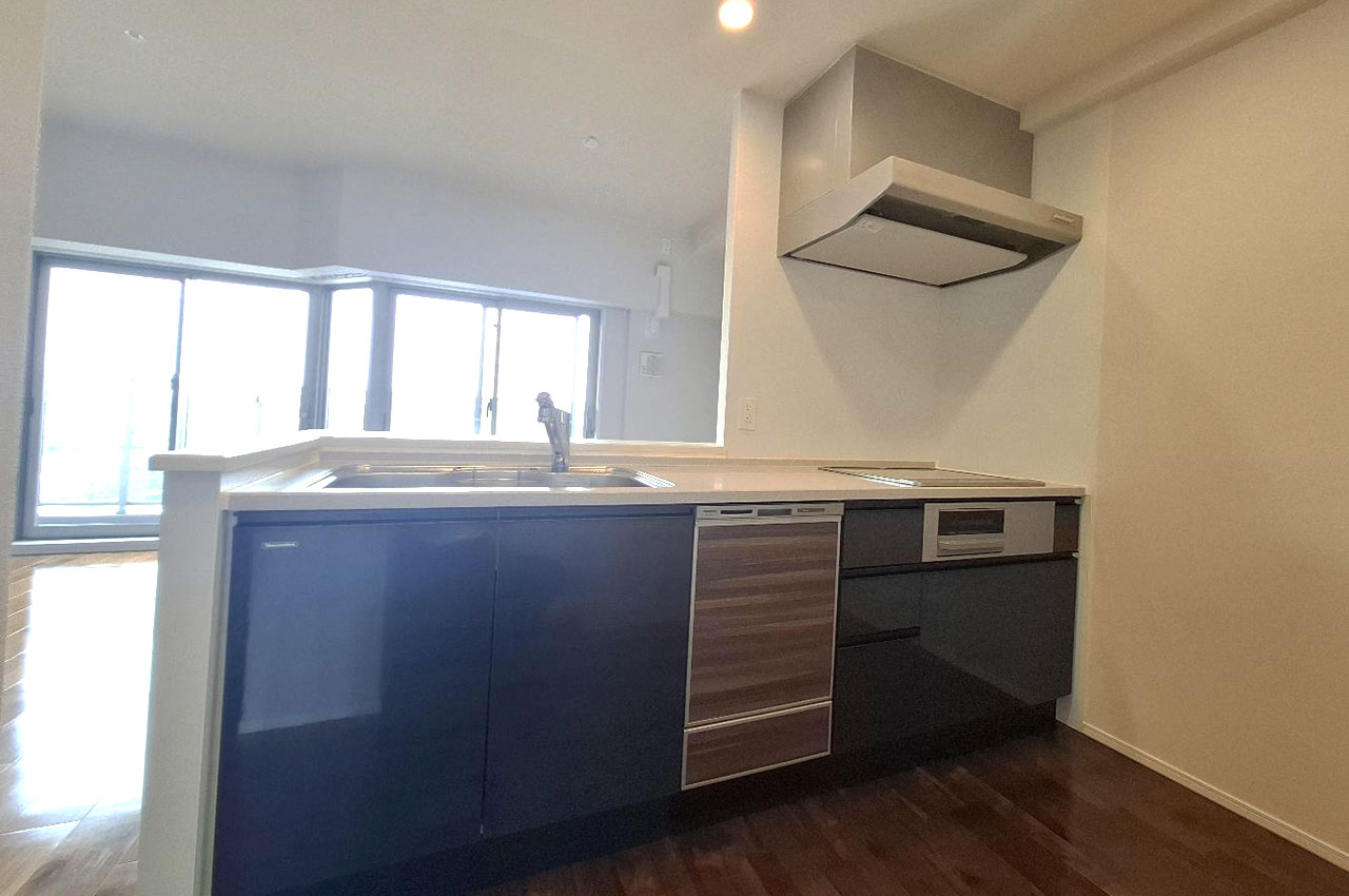 スタイリッシュなシステムキッチン、家事の時短にも役立つ食洗機付きです。