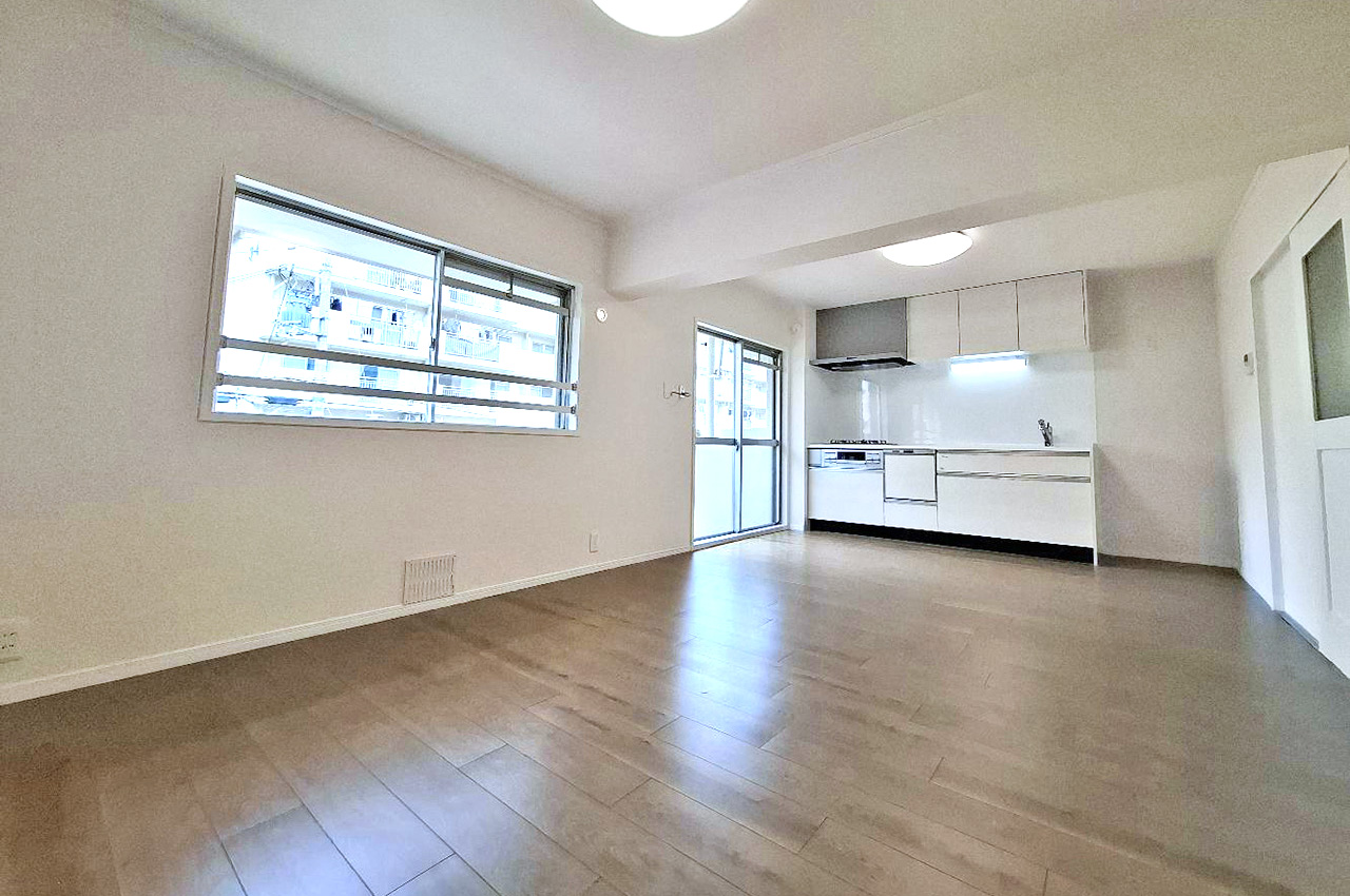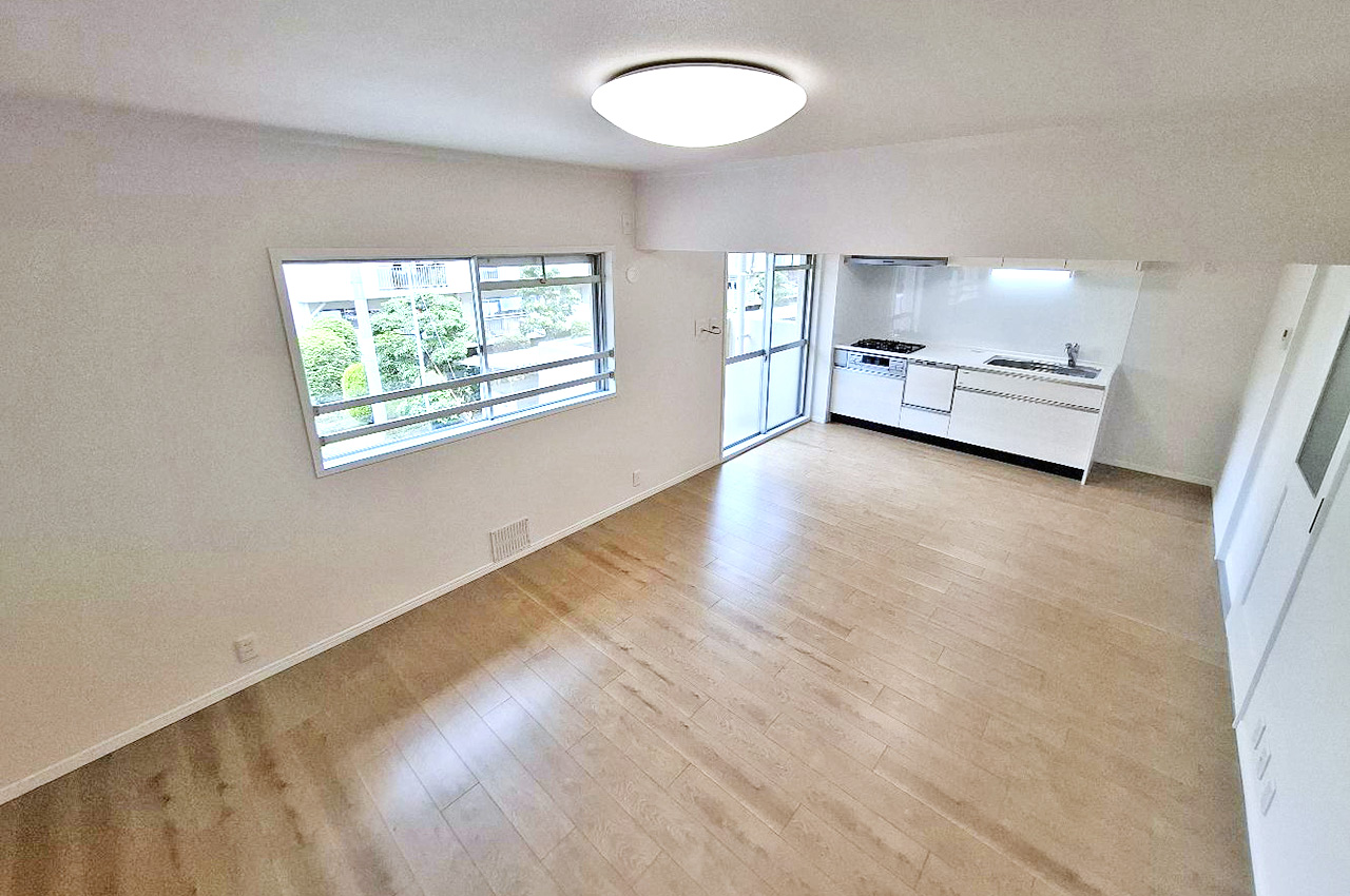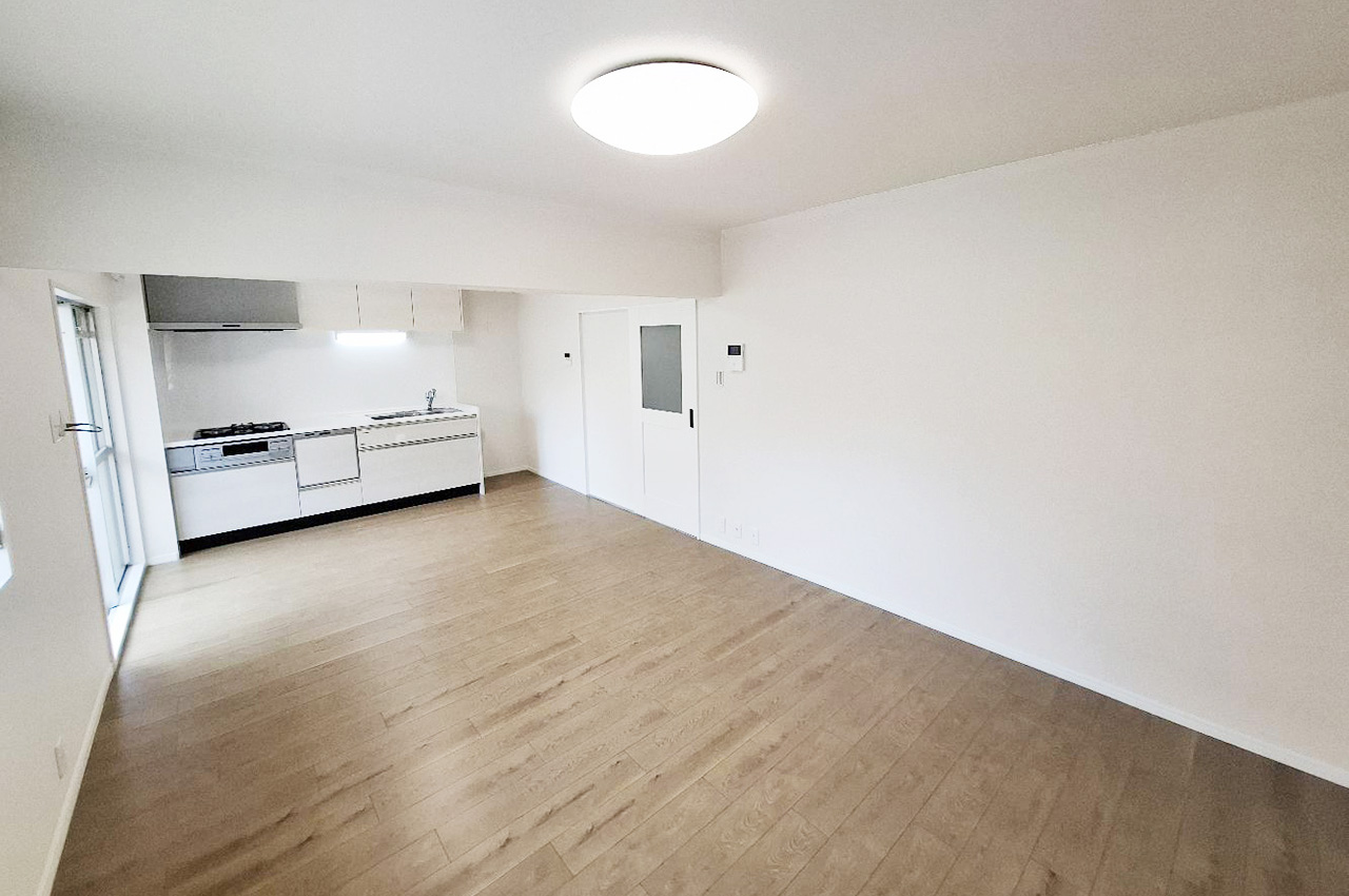 リフォームできれいに生まれ変わったLDK。ナチュラルな床材と白い壁で心地よい空間に仕上げました。