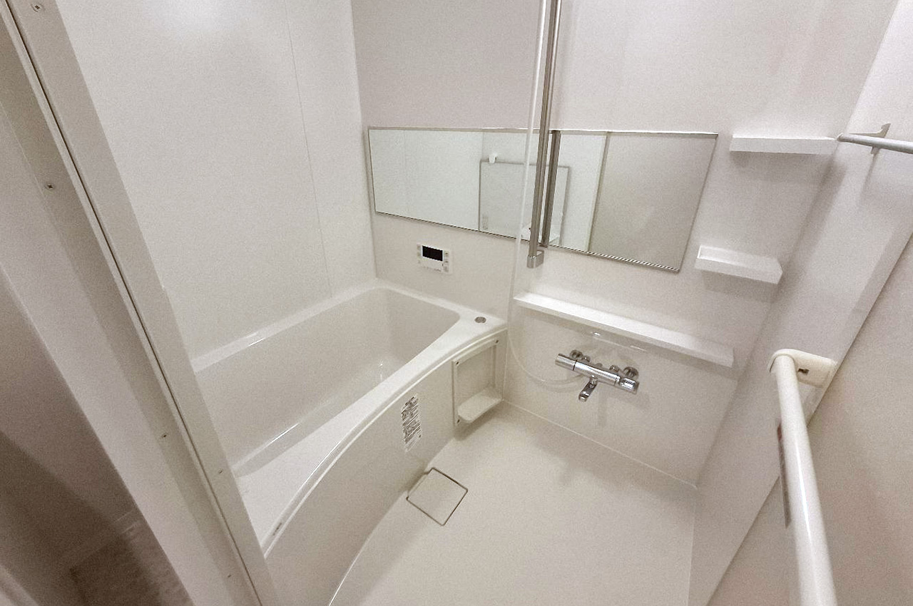 白を基調とした明るい浴室に一新。毎日リラックスできるバスタイムを実現します。