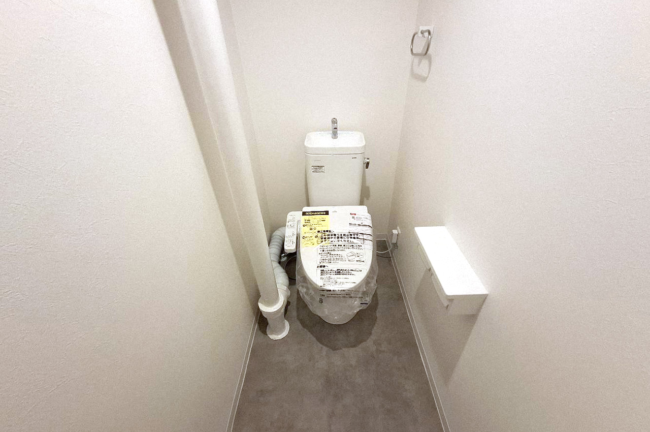 リフォームで一新したトイレ。壁や床、便器や温水洗浄便座もまっさらです。
