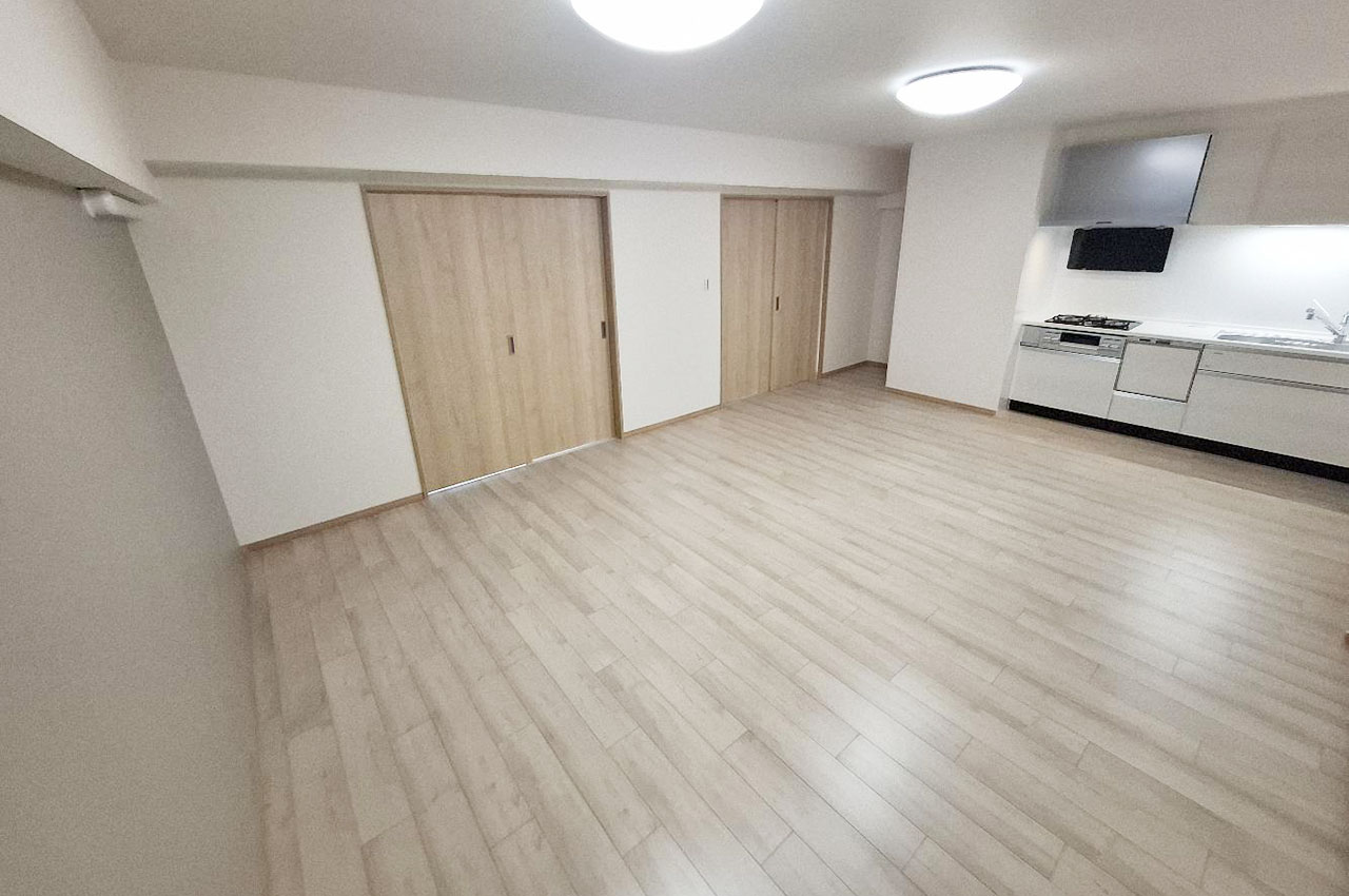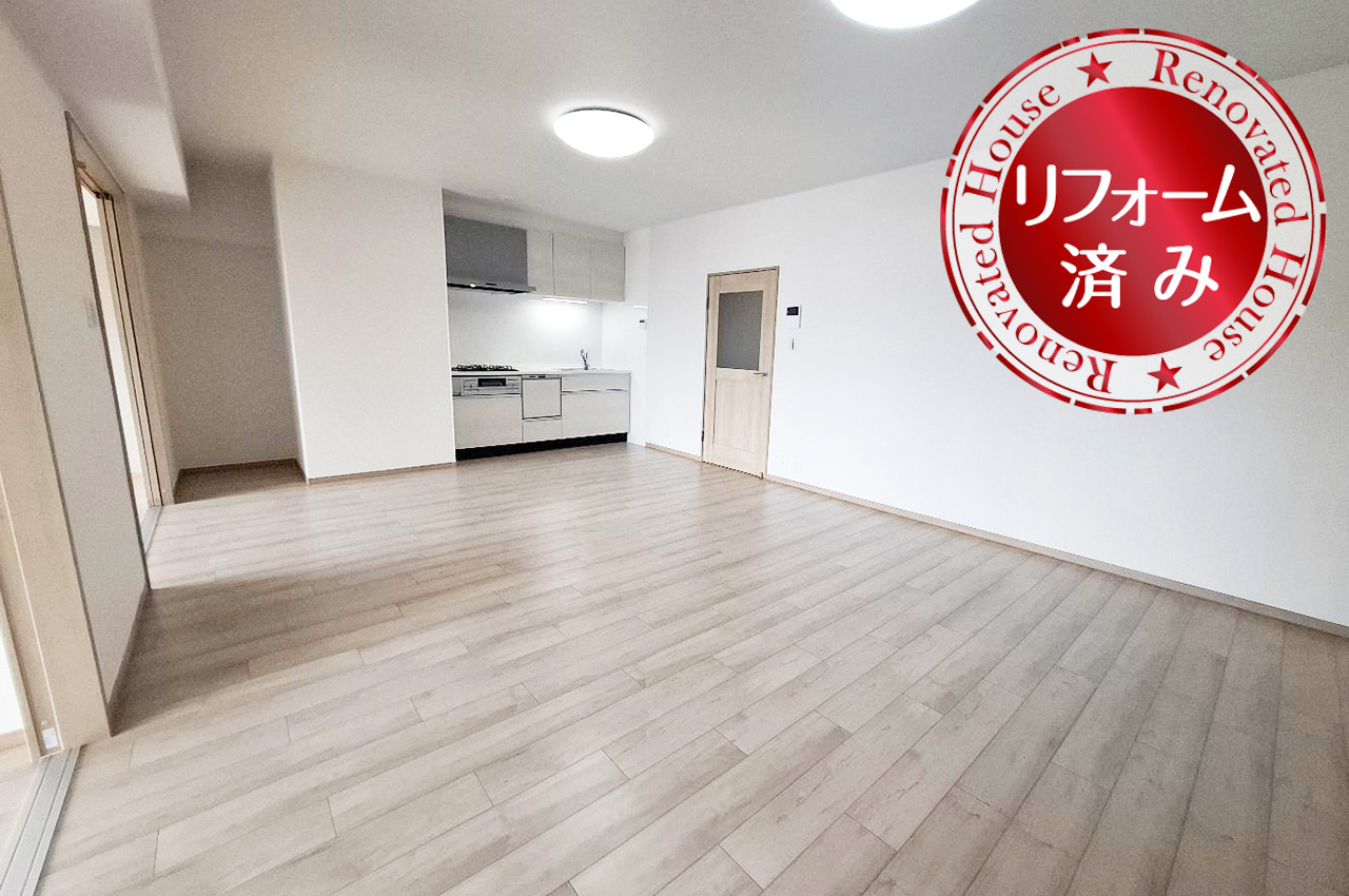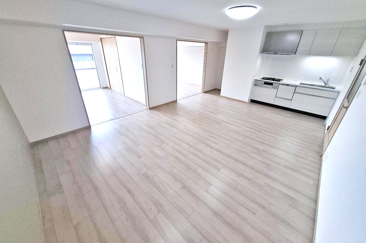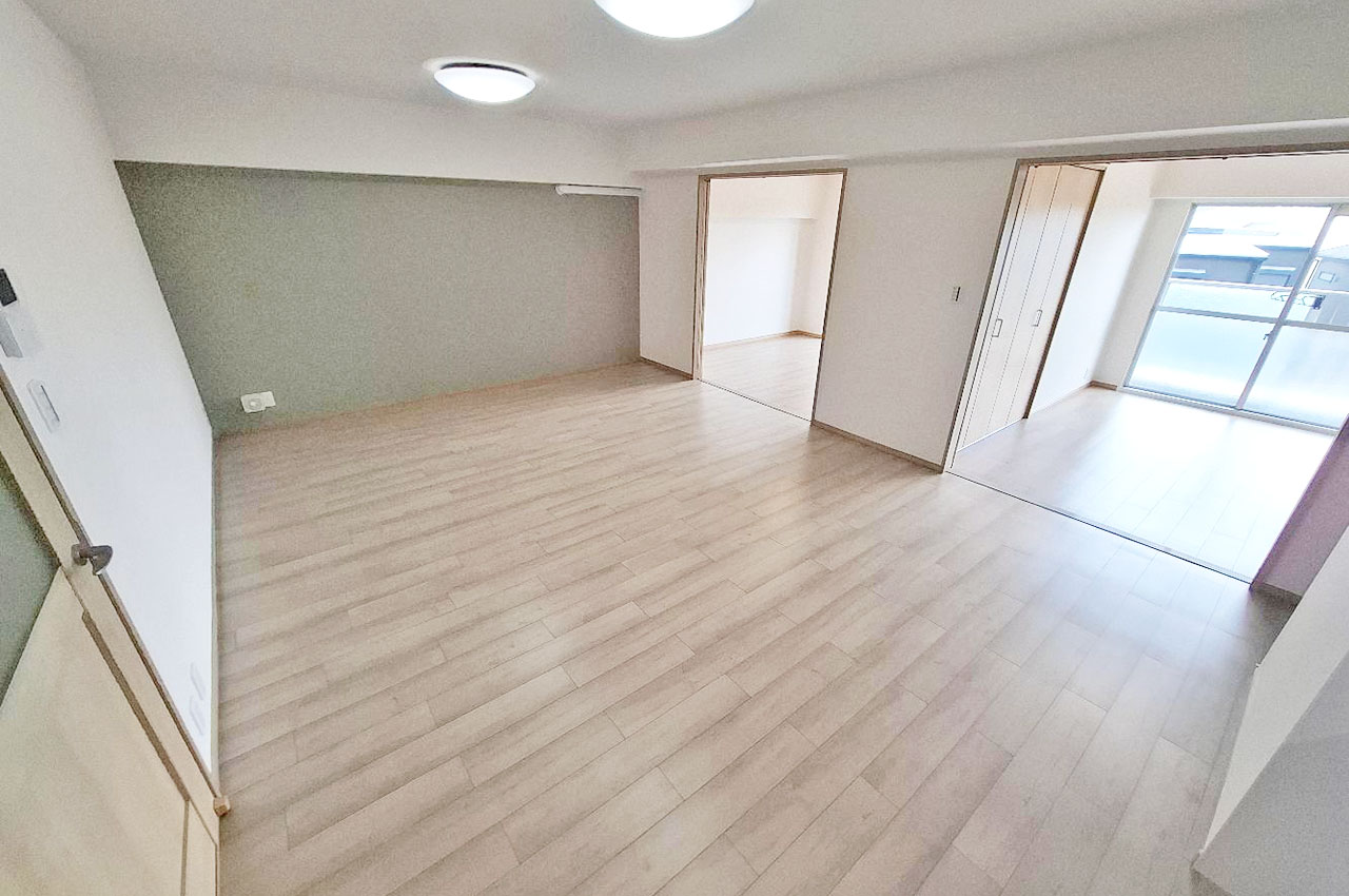 フルリフォームで生まれ変わったLDK。ナチュラルなフローリングと白い壁がどんな家具にも調和します。