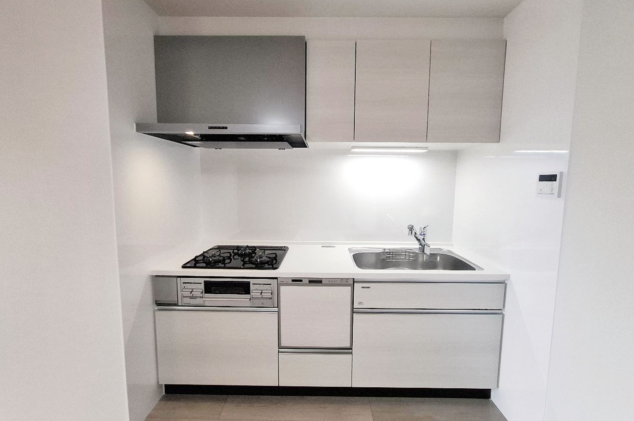 リフォームで一新したキッチン周り。新調した食洗機付きキッチンで、毎日の家事がぐんとラクになります。