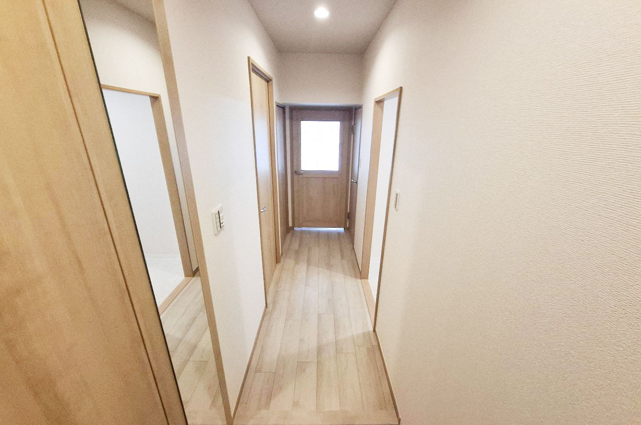 まっさらな内装に生まれ変わった玄関周り。家族やゲストを気持ち良く迎えられる美しい空間です。