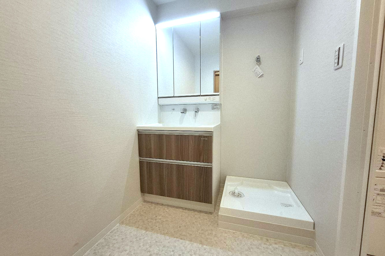 リフォームで一新した洗面室。清潔感のある空間が、毎日の身支度を快適にしてくれます。
