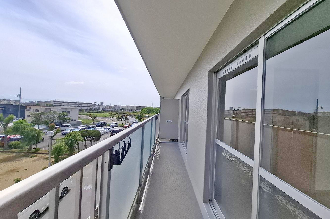 洋室②と洋室③から出入りできるバルコニー。南西向きで日当たり良好です。