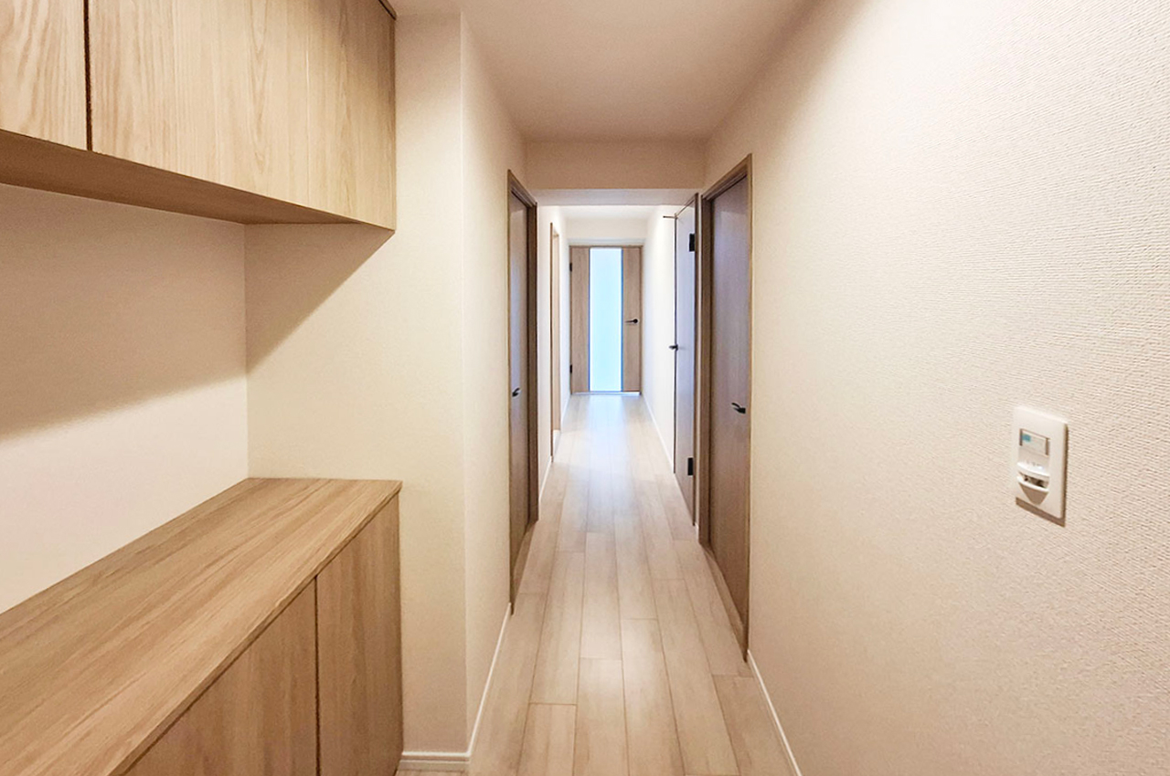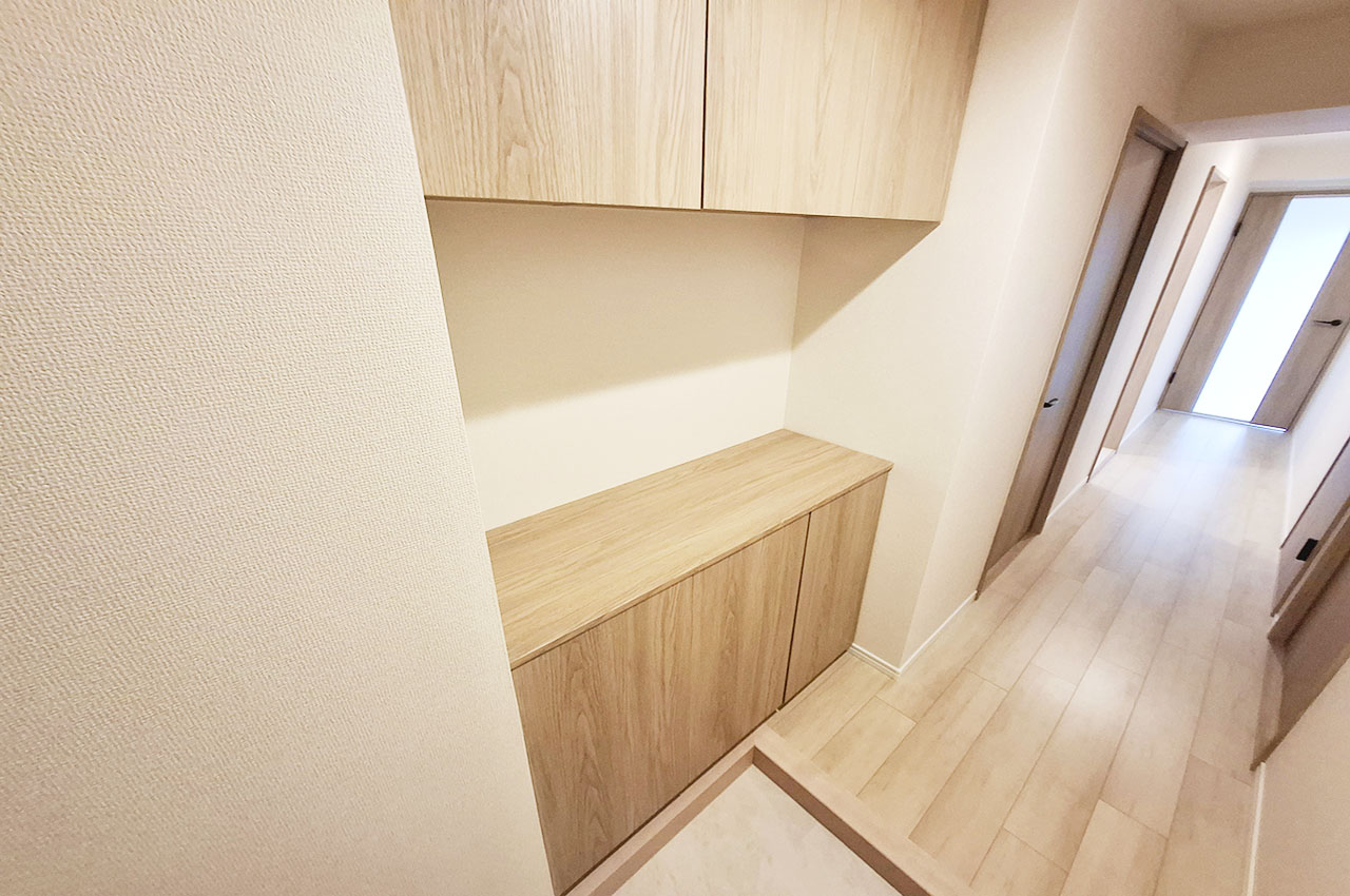 玄関:下駄箱付きで家族分の靴をしっかり収納可能。