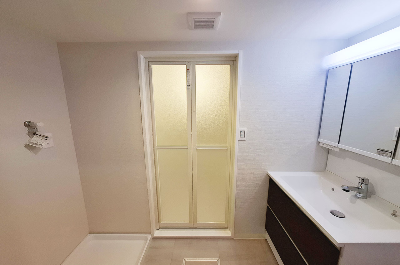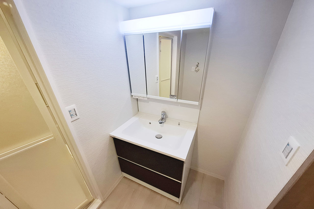 洗面室:新調済みの洗面化粧台で清潔感あり。