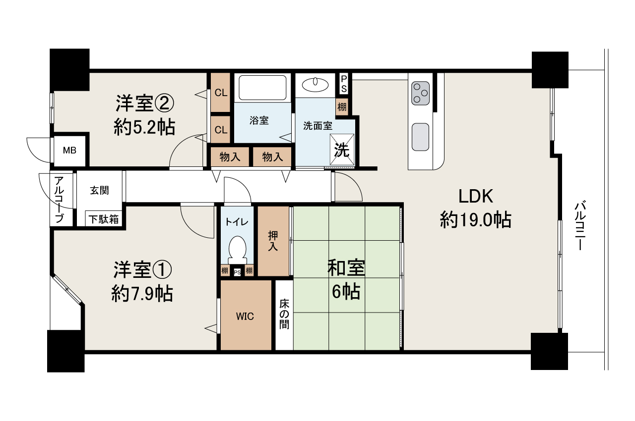 洋室①:約7.9帖の広さでゆったりと過ごせます。洋室①:約7.9帖の広さでゆったりと過ごせます。