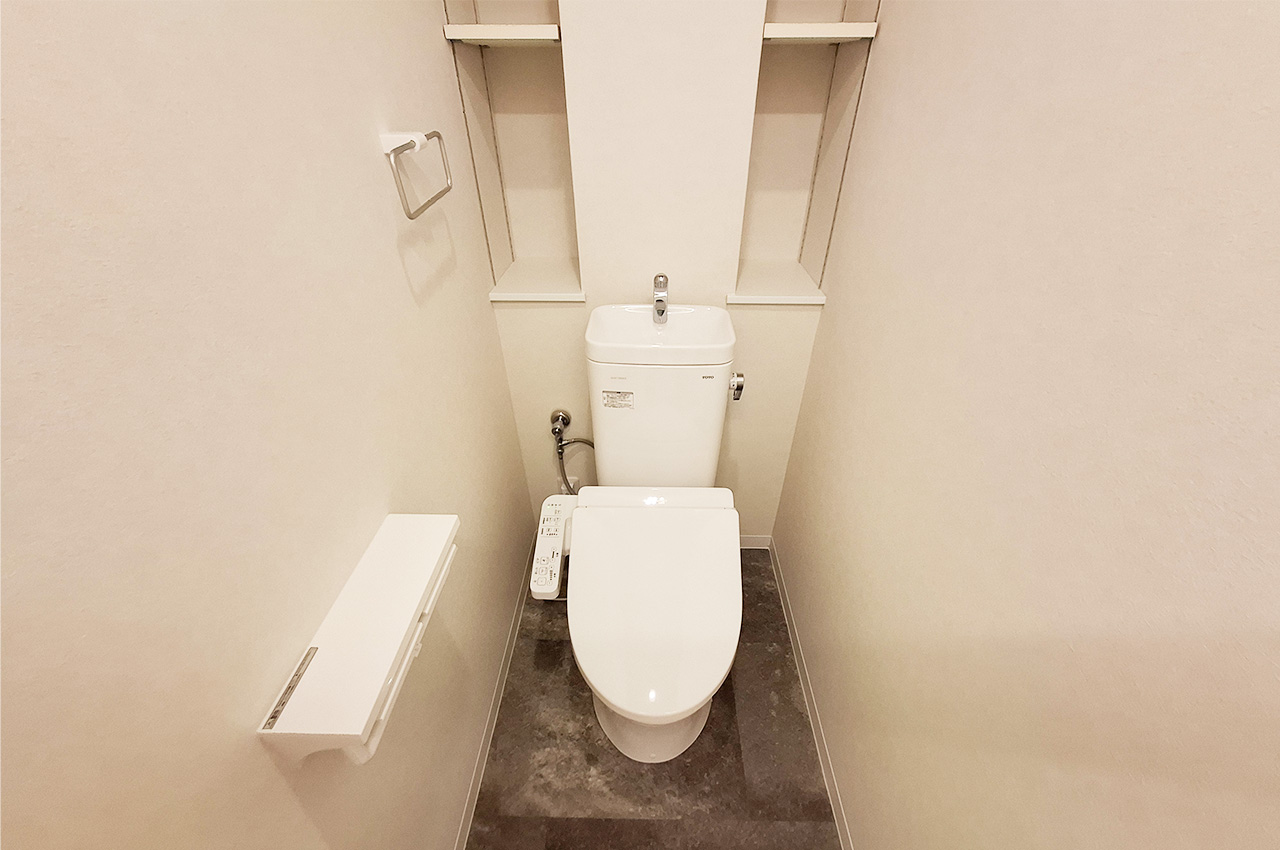 トイレ:便器、温水洗浄便座を新調済み。背面にある収納棚が便利です。トイレ:便器、温水洗浄便座を新調済み。背面にある収納棚が便利です。