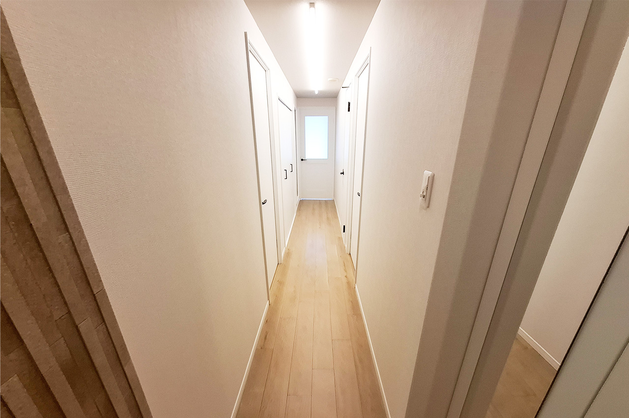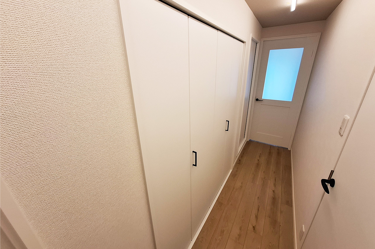 廊下:廊下収納の物入も新調済み。季節小物や使わない電化製品などの整理整頓に便利です。
