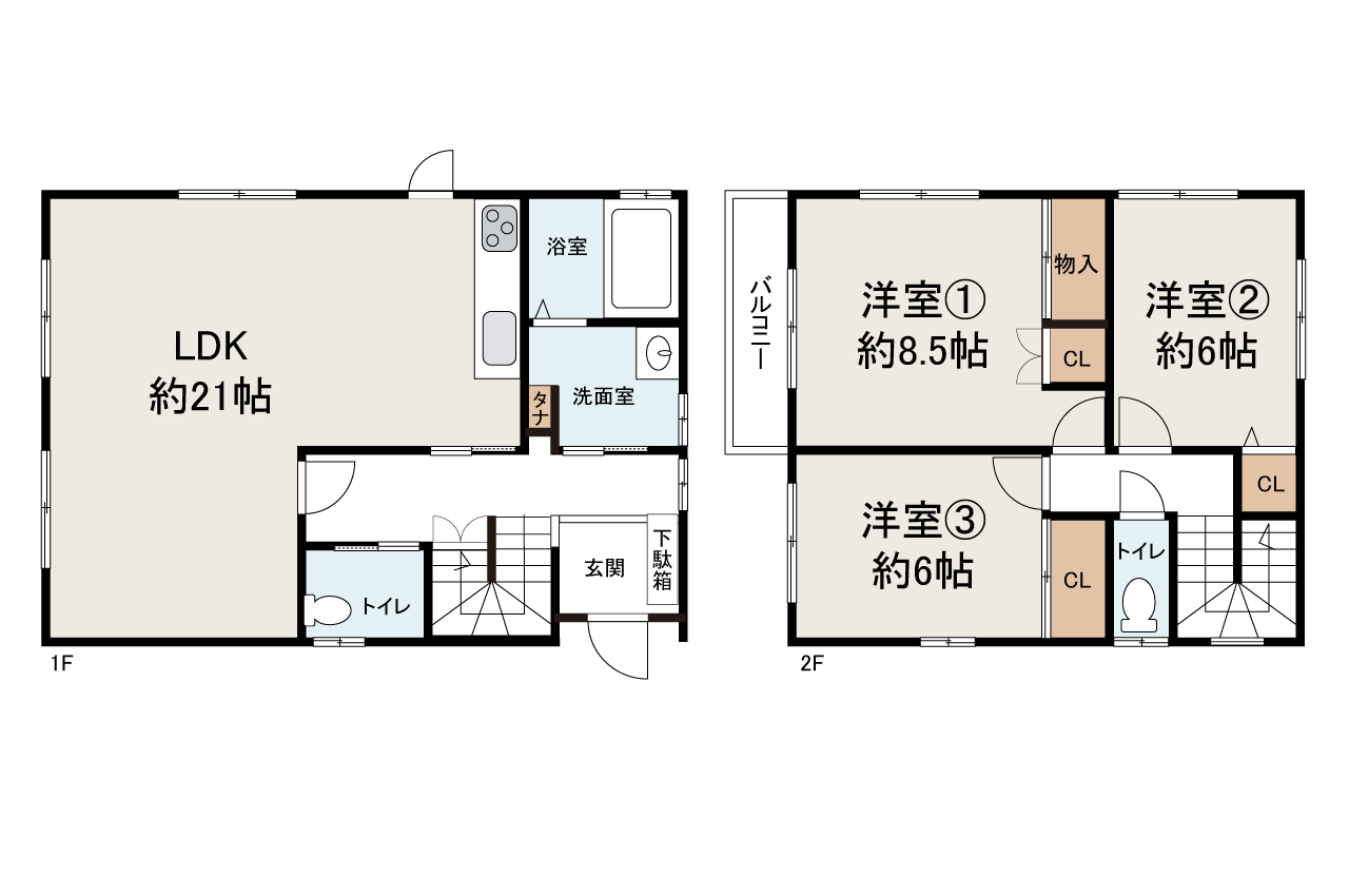◆全居室6帖以上でLDKは約21帖のゆとりある間取り!