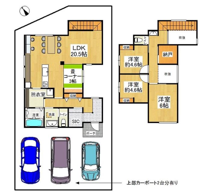 駐車スペース | 普通車2台 軽自動車1台 | ||