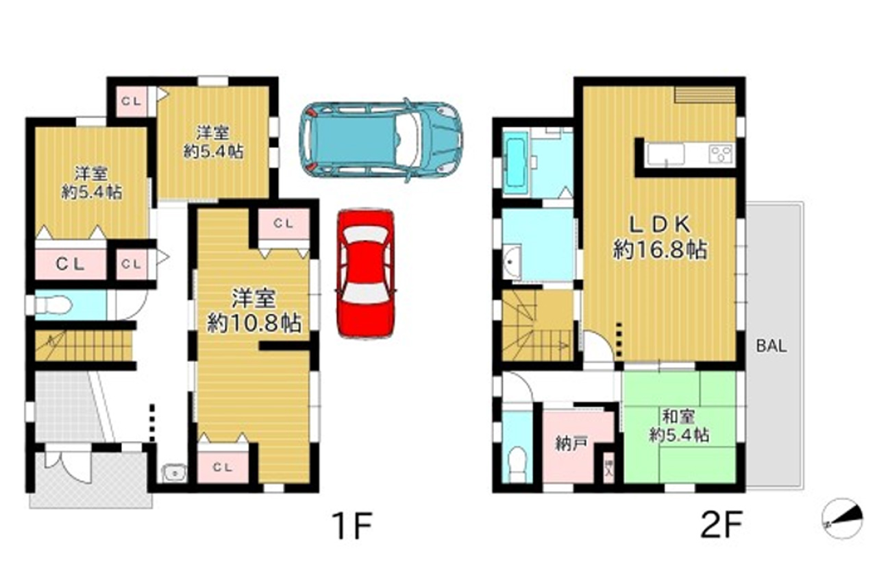| 設備・特徴 | 電気 公営水道 都市ガス 個別浄化槽 全居室収納あり LDK16帖以上 ゆとりの4LDK 駐車2台OK 2階リビング 角地 日当良好 食洗機 浴室乾燥機 対面キッチン 納戸 | ||