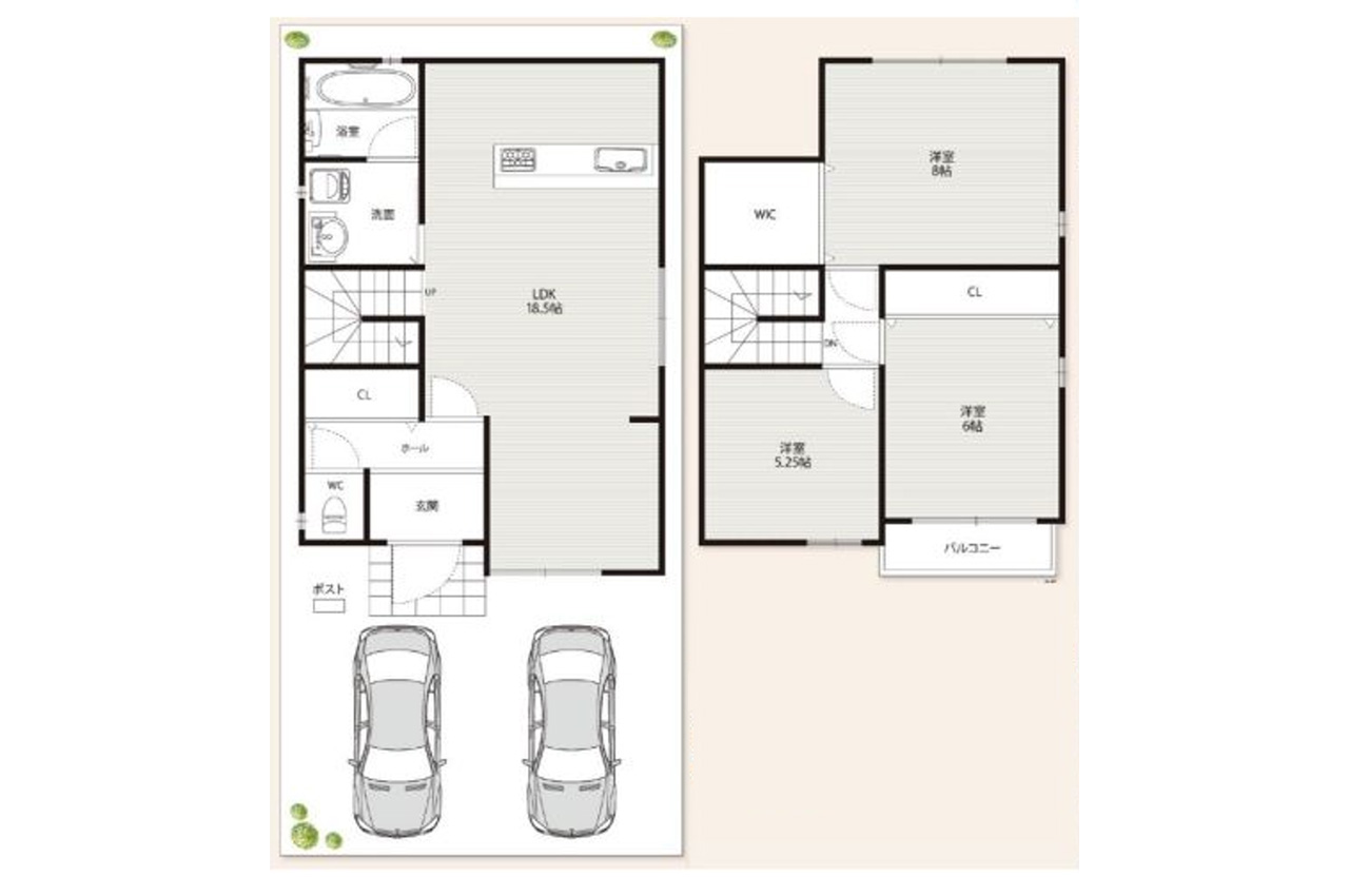 設備・特徴 | 電気 公営水道 都市ガス 公共下水 LDK16帖以上 即引渡可 駐車2台OK リビング階段 急行停車駅 学校近し 買物便利 公園近く ウォークインクローゼット カウンターキッチン | ||