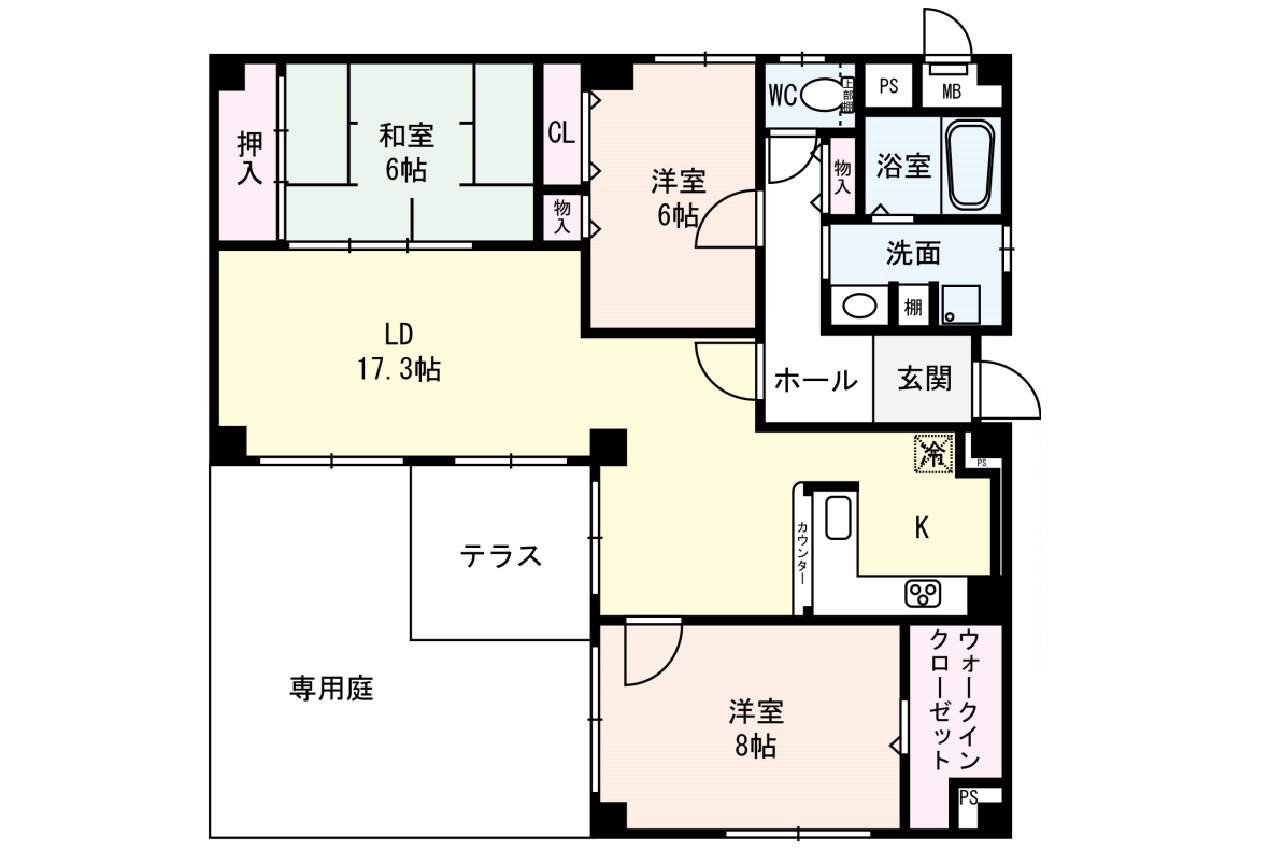 | 設備・特徴 | 電気 公営水道 都市ガス 公共下水 全居室収納あり LDK16帖以上 即引渡可 全居室6帖以上 ペット相談 駐輪場 バイク置場 急行停車駅 学校近し カウンターキッチン L型キッチン ウォークインクローゼット 専用庭 | ||