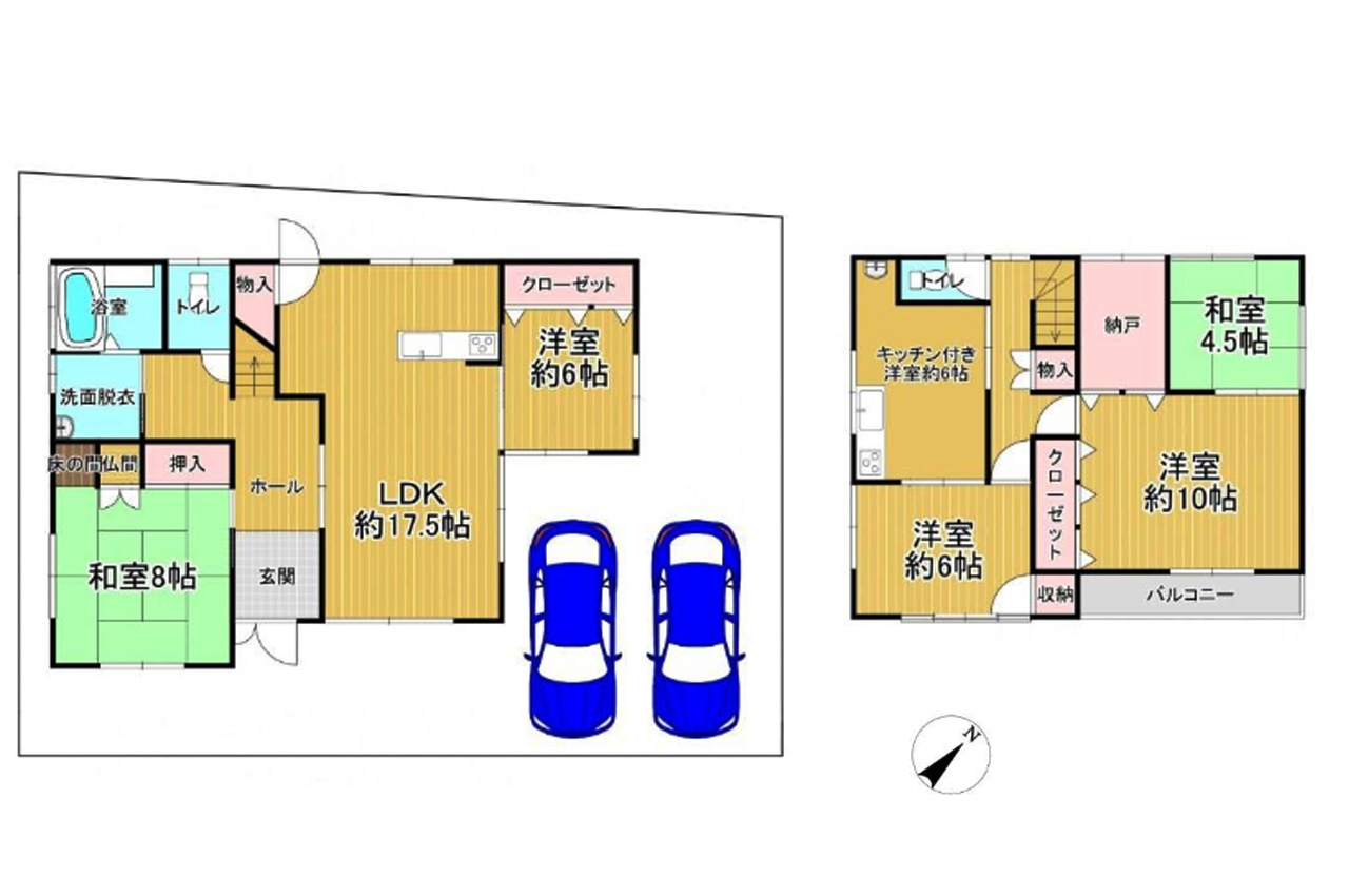設備・特徴 | 公営水道 都市ガス 公共下水 収納多し LDK16帖以上 ゆとりの5LDK 駐車2台OK トイレ2ヶ所 買物便利 閑静な住宅地 土地広 浴室乾燥機 対面キッチン 壁付キッチン 納戸 カーポート | ||