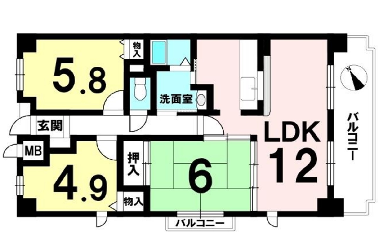 | バルコニー面積 | 12.49㎡ | バルコニー向き | 南東 南西 |