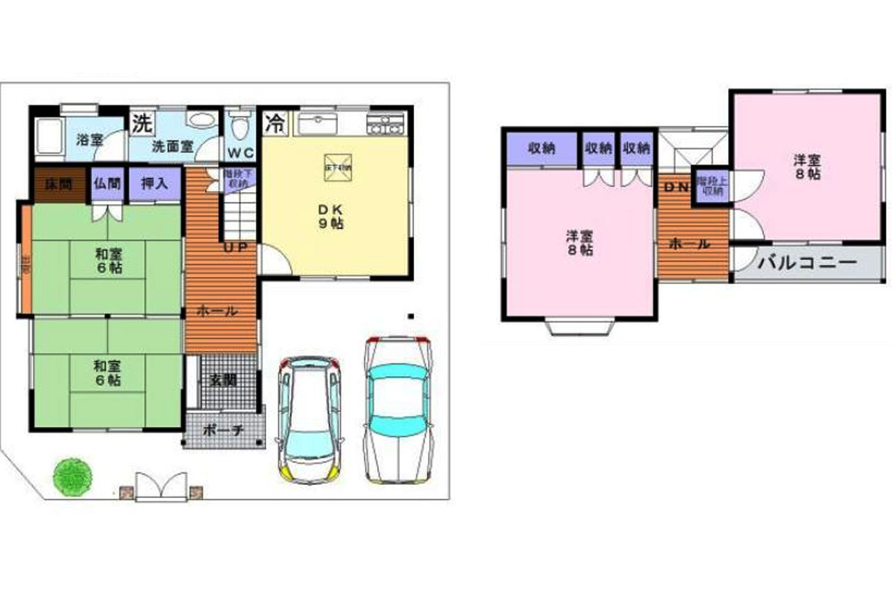| 設備・特徴 | 電気 公営水道 都市ガス 汲取 和室続間 駐車2台OK 全居室6帖以上 駅近 学校近し 壁付キッチン | ||