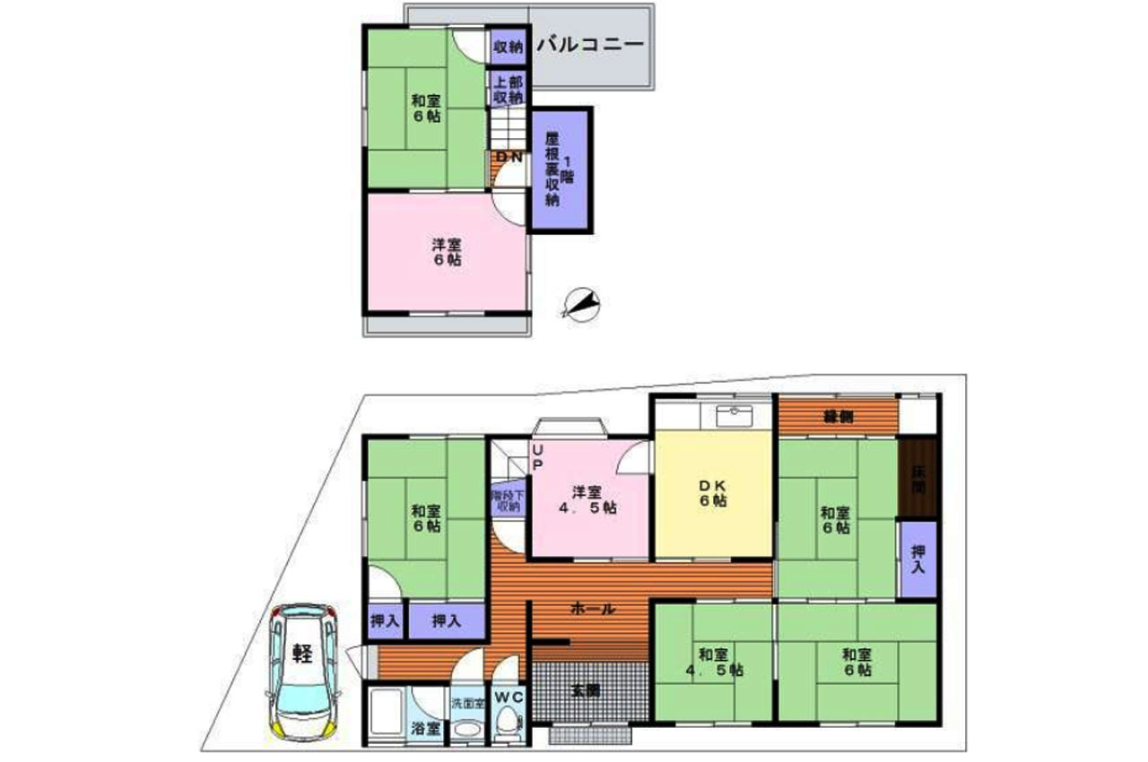 | 設備・特徴 | 電気 公営水道 プロパンガス(個別) 個別浄化槽 大人数家族向き 和室続間 駐車スペースあり 急行停車駅 学校近し 買物便利 土地広 壁付キッチン 屋根裏収納 | ||