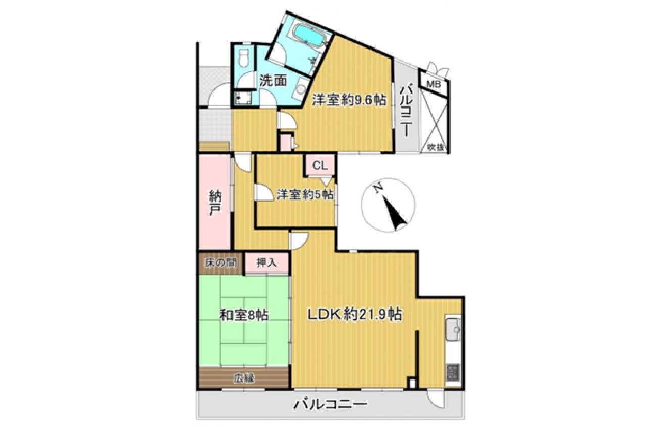 設備・特徴 | 電気 公営水道 都市ガス 集中浄化槽 全居室収納あり LDK16帖以上 2面バルコニー 2階以上 駐輪場 浴室窓 快速停車駅 駅近 買物便利 日当良好 眺望良好 壁付キッチン 納戸 | ||