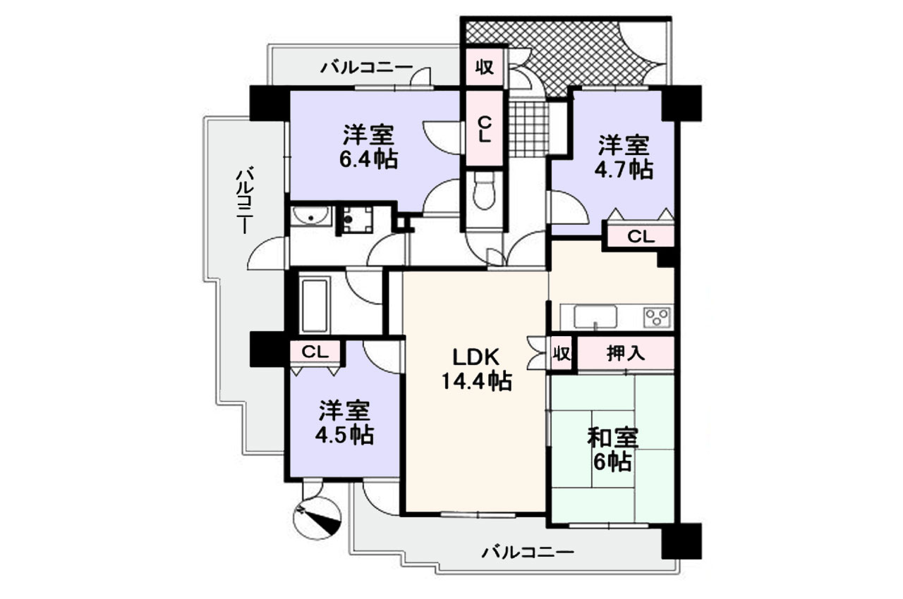 専有面積80.14m2!三面バルコニーの角部屋!