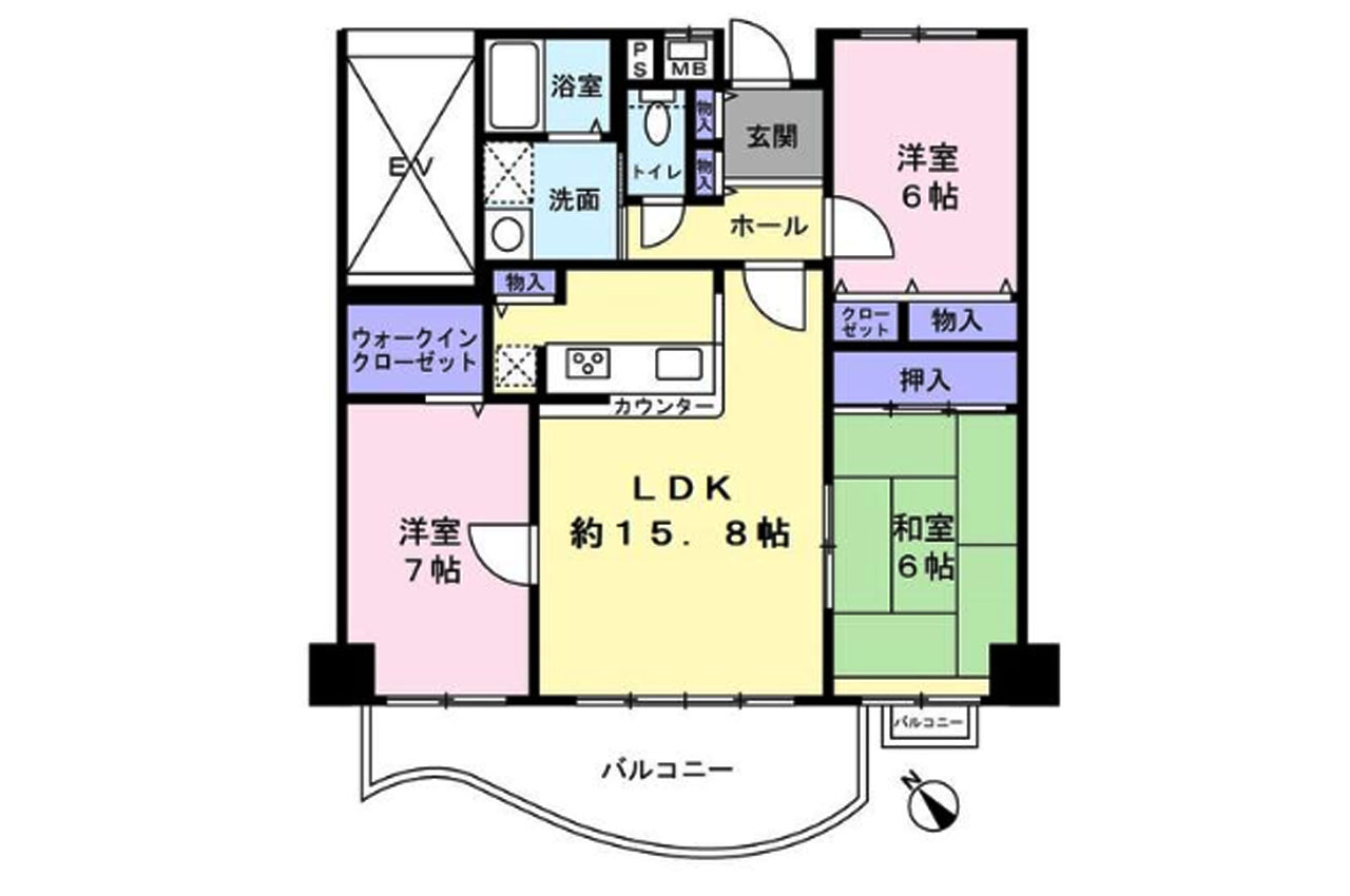 | 設備・特徴 | 電気 公営水道 都市ガス 公共下水 全居室収納あり 全居室6帖以上 バルコニー2ヶ所 ペット相談 2階以上 駐輪場 バイク置場 急行停車駅 学校近し 日当良好 眺望良好 浴室乾燥機 カウンターキッチン オートロック | ||