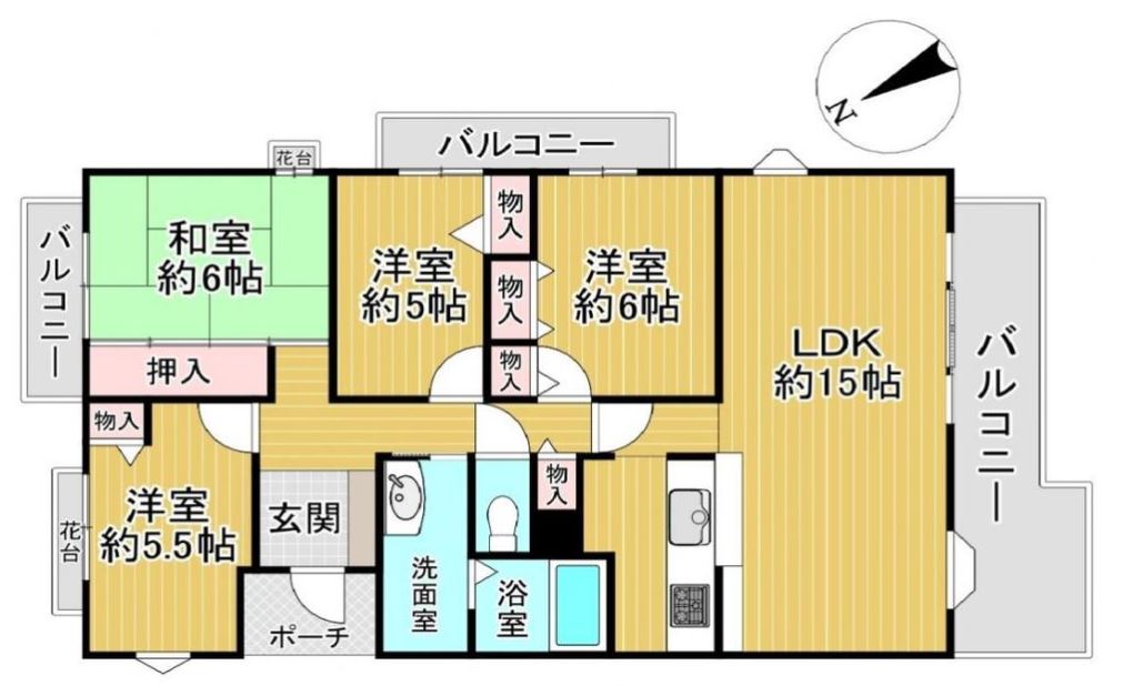 | バルコニー面積 | 18.79㎡ | バルコニー向き | 南 北 東 |