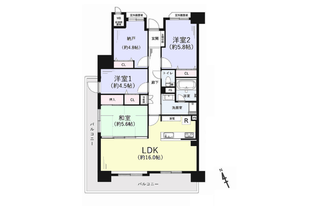 | バルコニー面積 | 19.48㎡ | バルコニー向き | 南西 北西 |