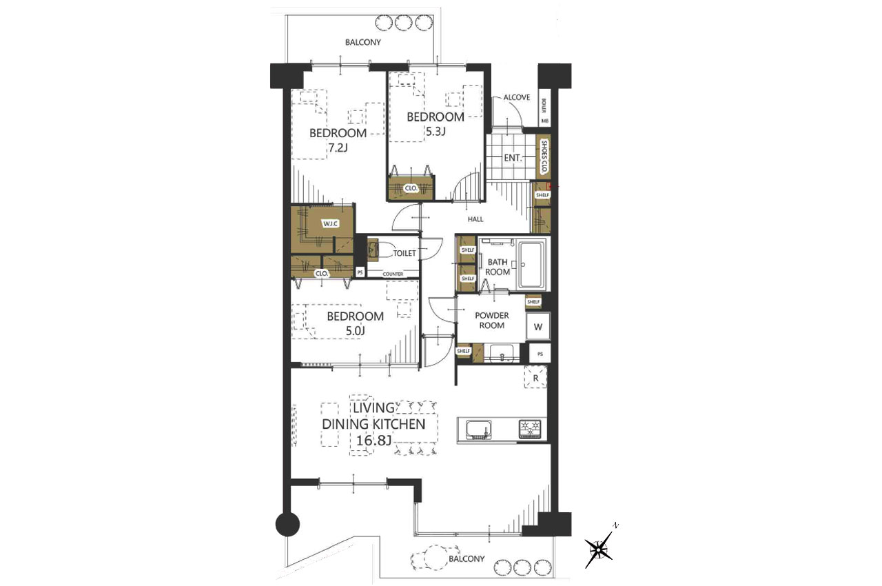 | バルコニー面積 | 17.02㎡ | バルコニー向き | 南東 北西 |