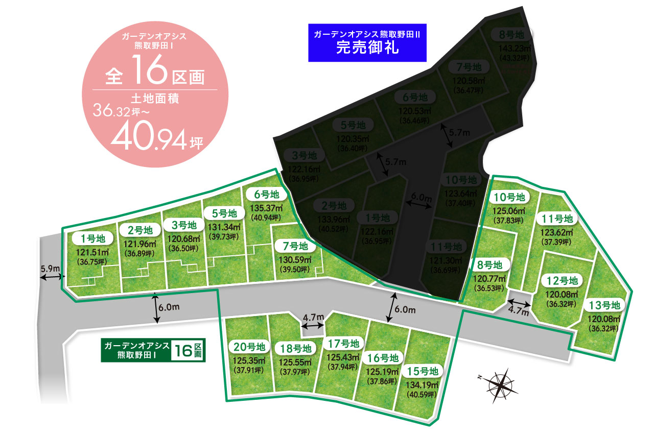全体区画図:子育ての街熊取に誕生した全16区画の新しい街。