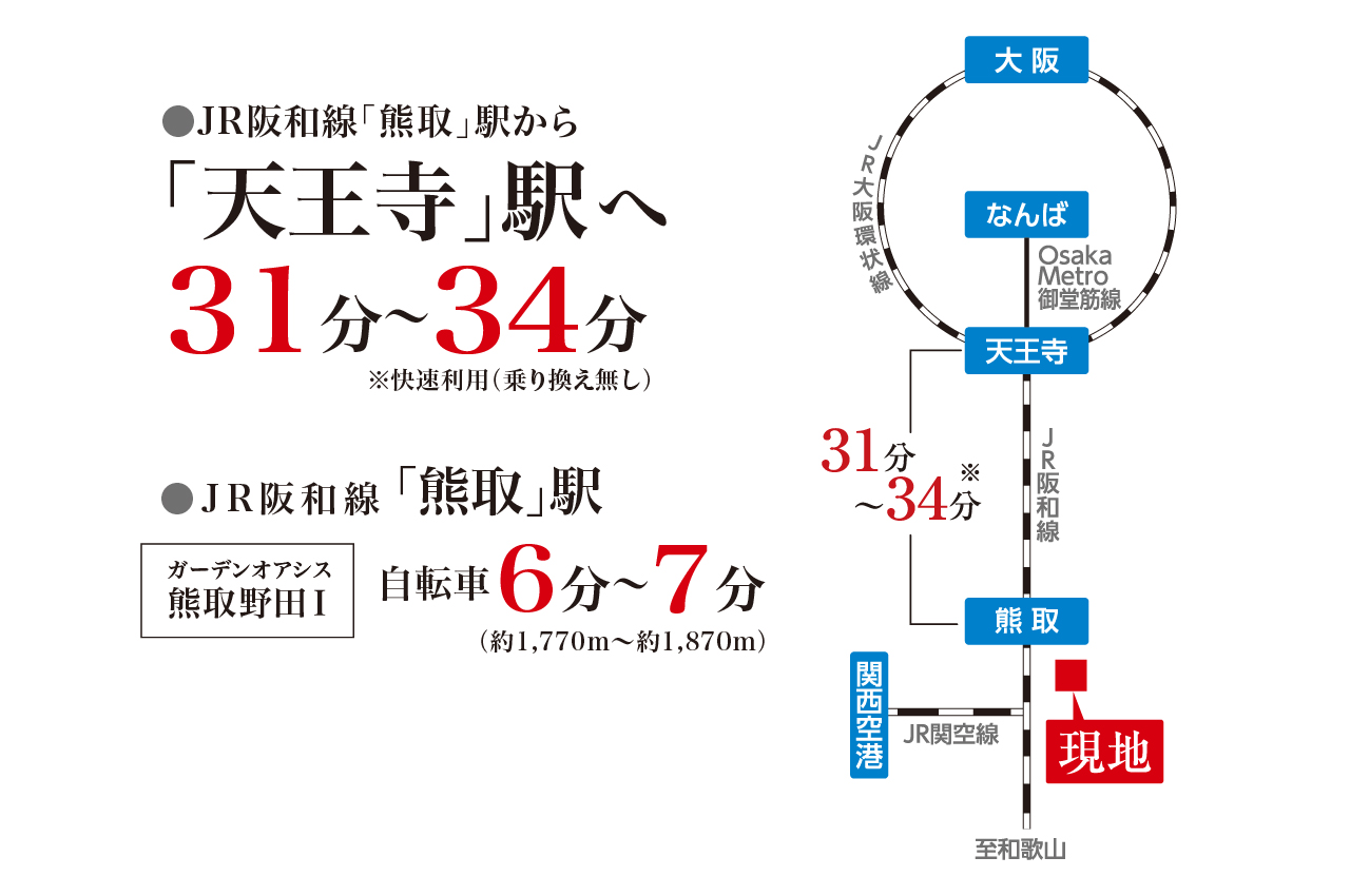 ・快速・区間快速停車駅!JR阪和線「熊取」駅まで自転車で6分~7分(約1,770m~1,870m)