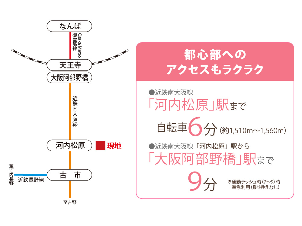 ・近鉄南大阪線「河内松原」駅 徒歩19分~20分/自転車6分(約1510m~1560m)