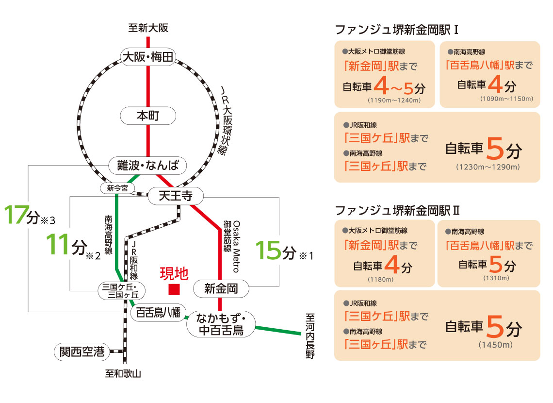 大阪メトロ御堂筋線×JR×南海線の3路線利用可!