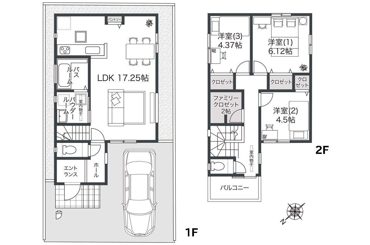 間取り図(家具・車の表記はイメージ配置になり、実際には付きません)