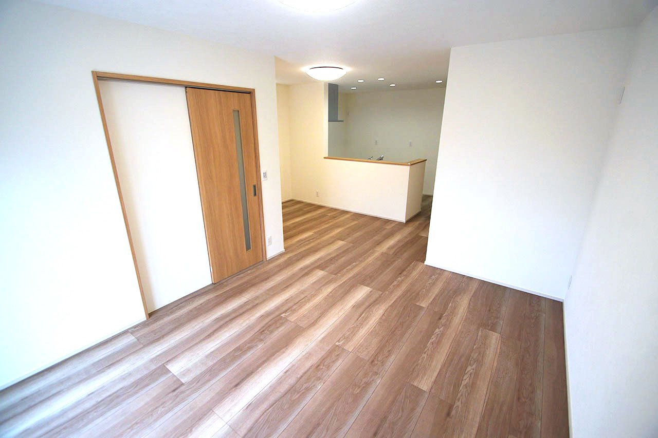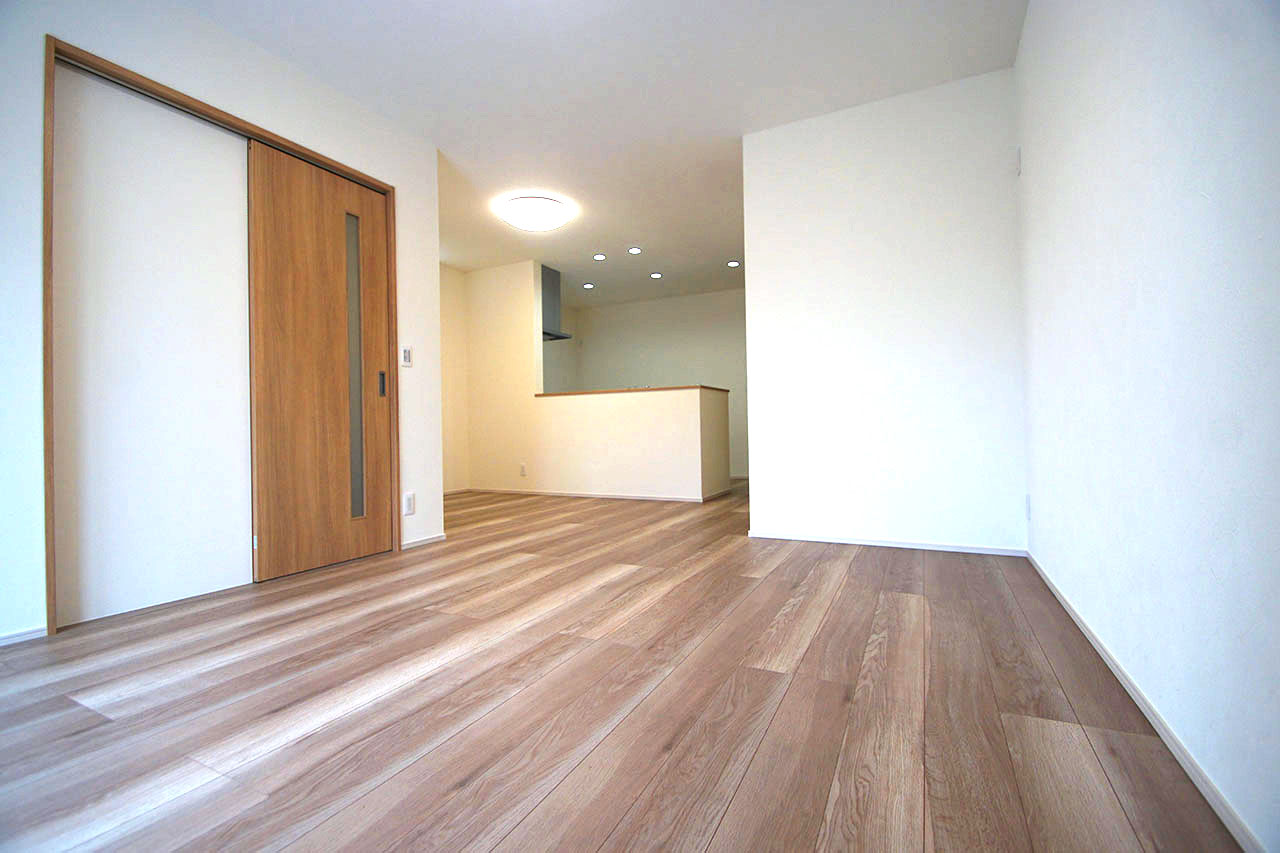 17.62帖の広々LDK。家族の団らんや来客にも対応できるスペースです。