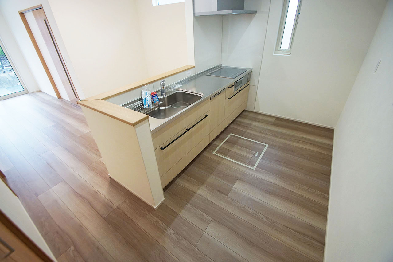 家族と会話をしながらお料理ができるオープンタイプの対面キッチン。