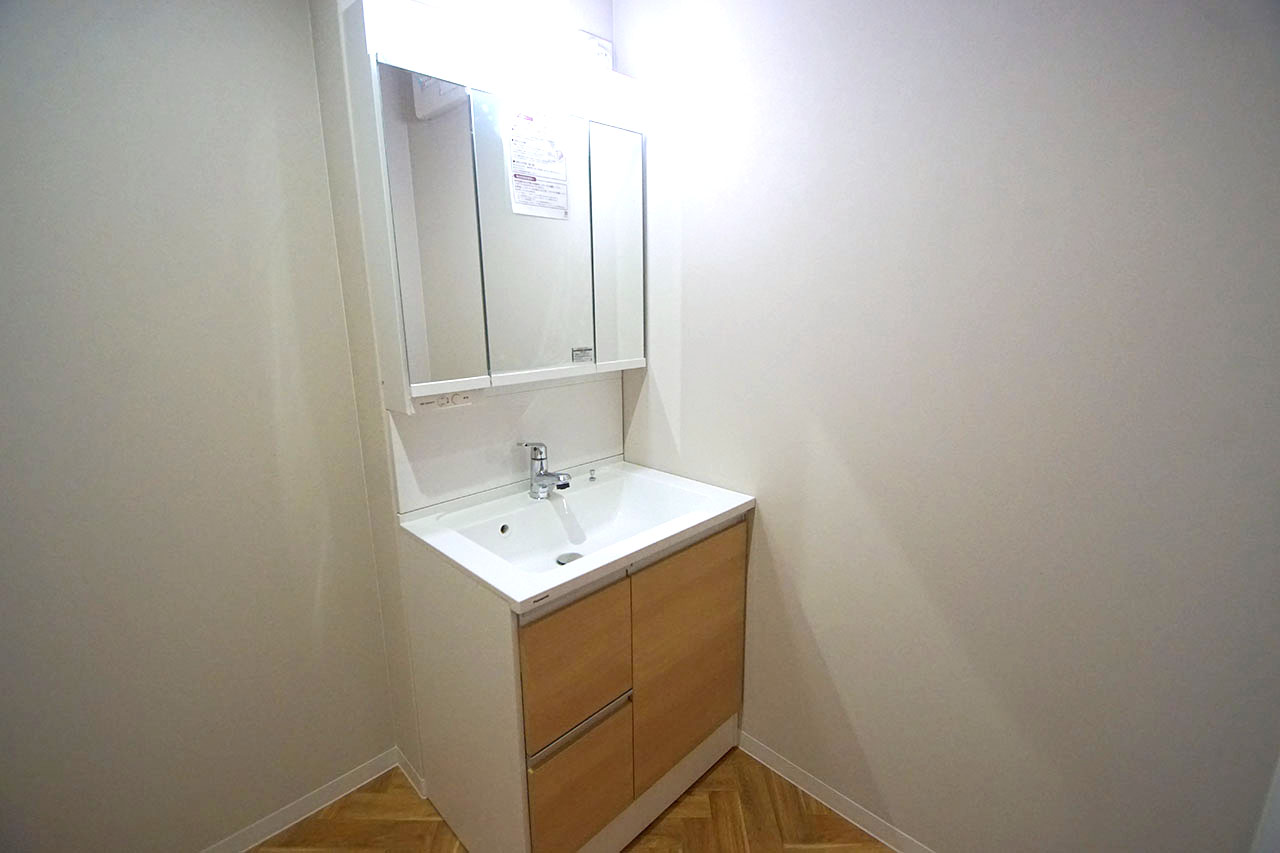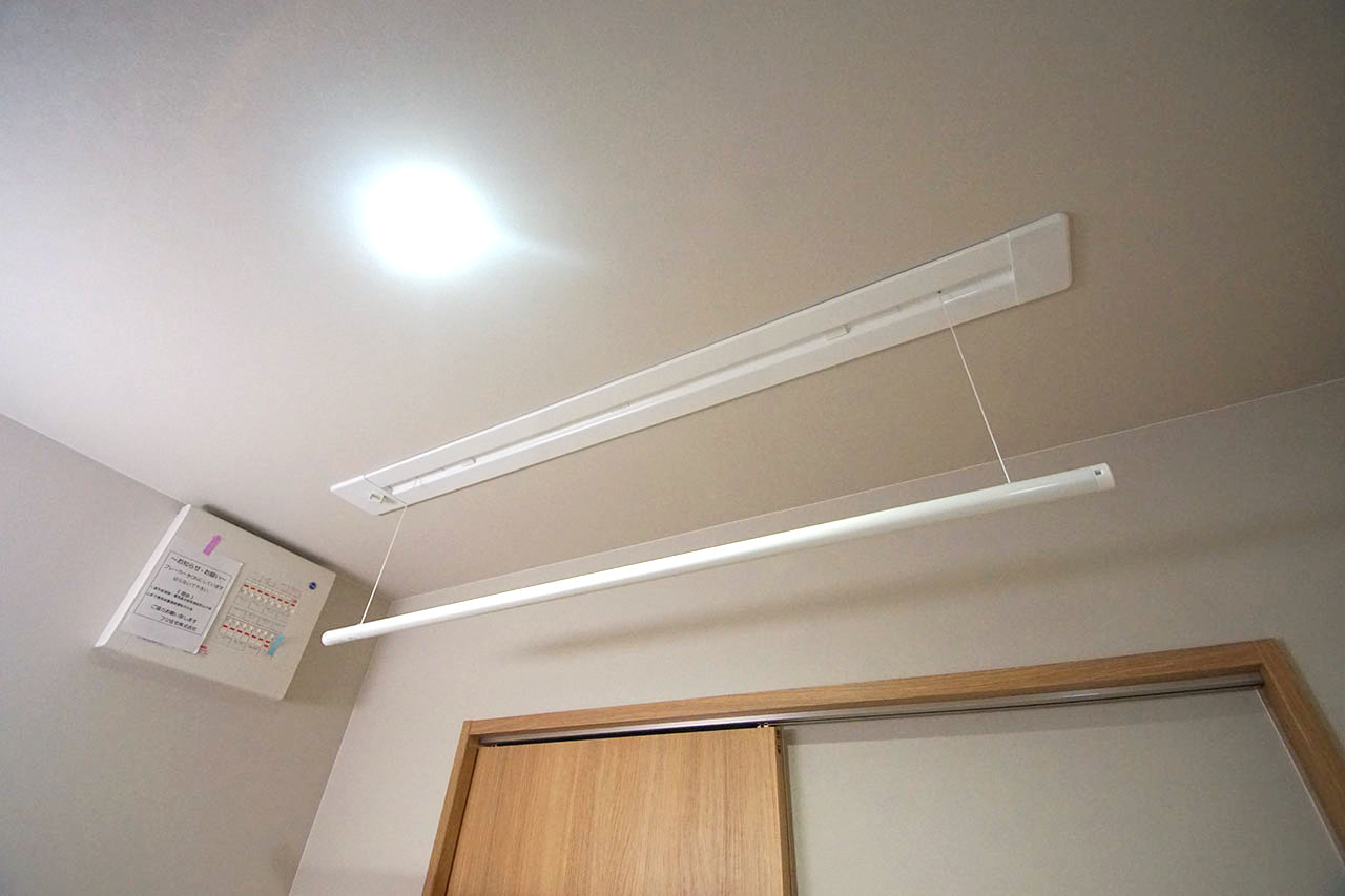 パウダールームには、お天気に関係なくお洗濯が干せる昇降式の室内物干(ホスクリーン)付き。