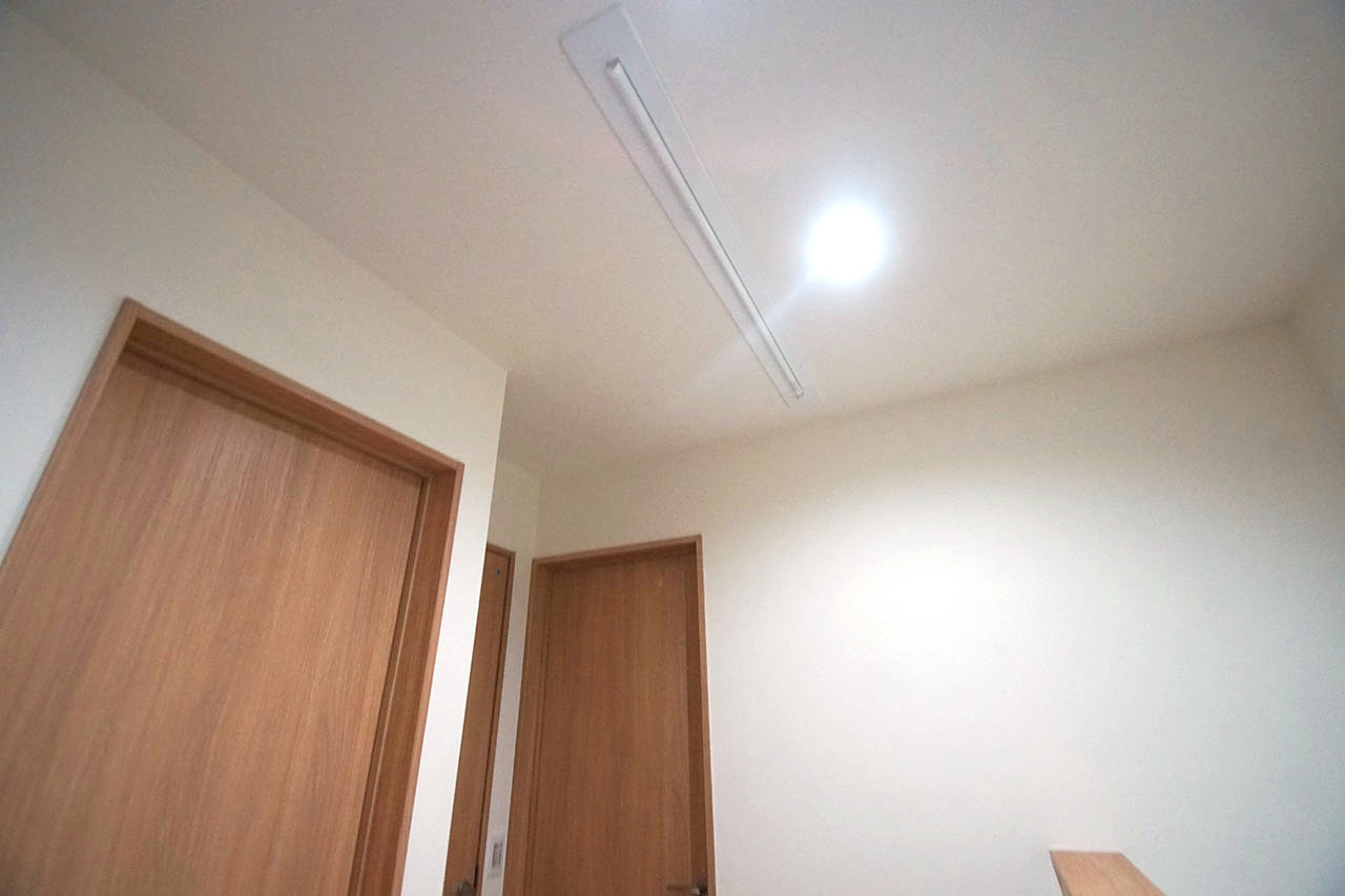 2階ホールにも昇降式の室内物干(ホスクリーン)を設置しました。