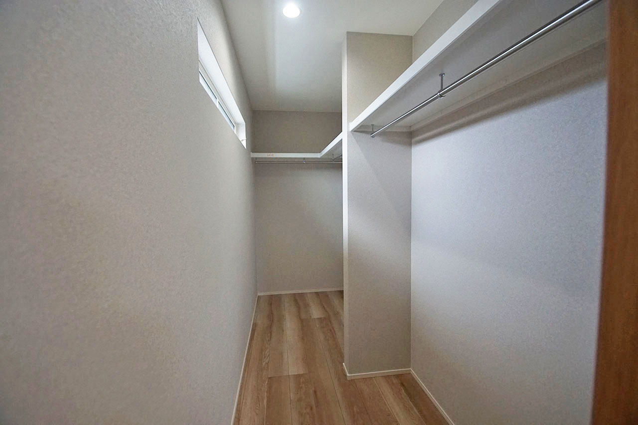 衣類だけでなく季節の家電など大物でもすっきり収まる、3帖のウォークインクロゼット。