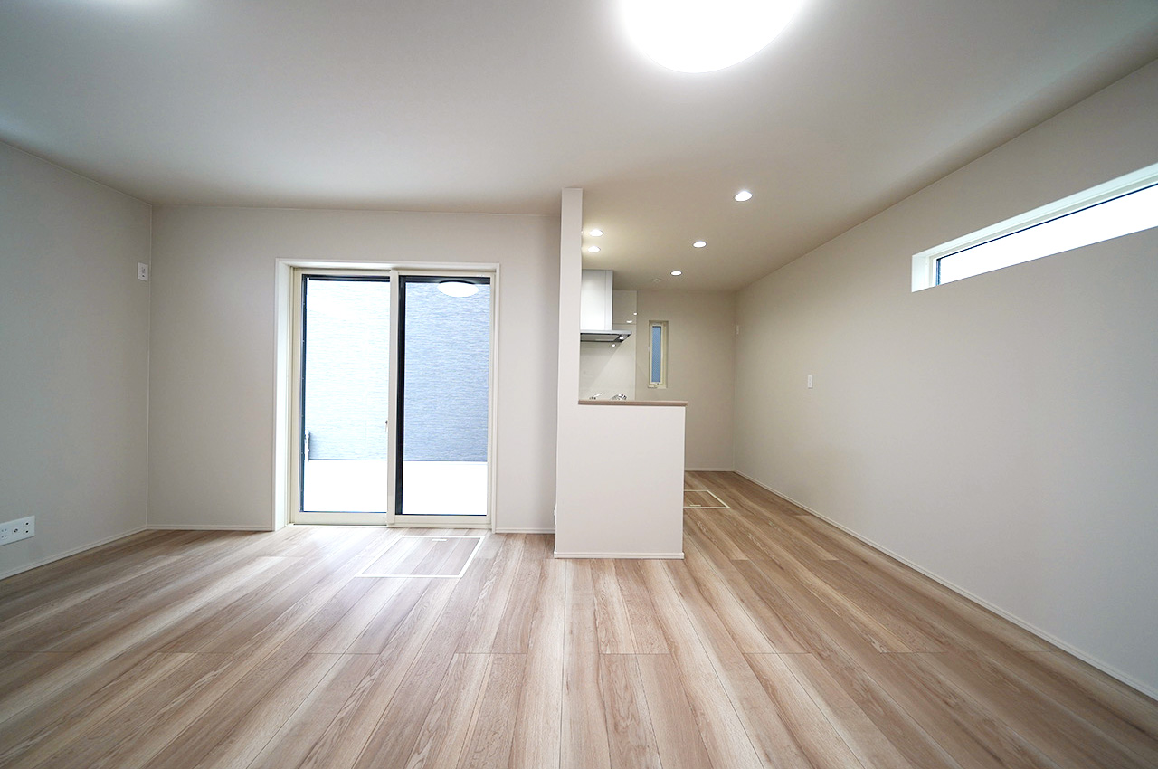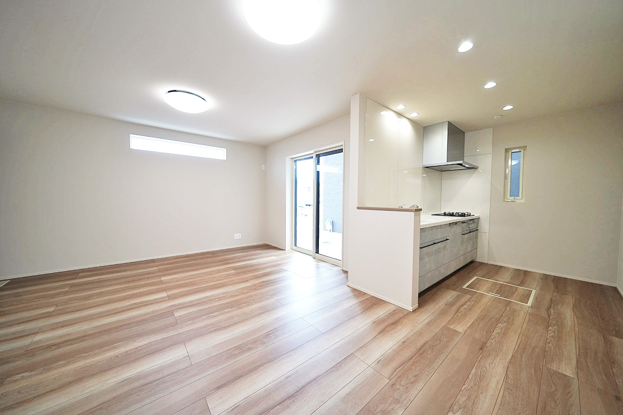 三面採光で明るく開放感たっぷりのLDK。家族が自然と集まる心地よい空間です。
