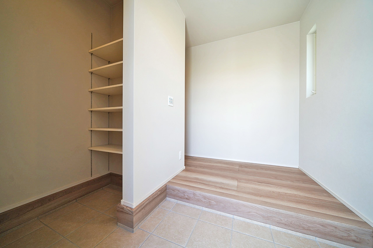 玄関には大容量のシューズクロークを設置。家族全員の靴やアウトドア用品もすっきり収納できます。