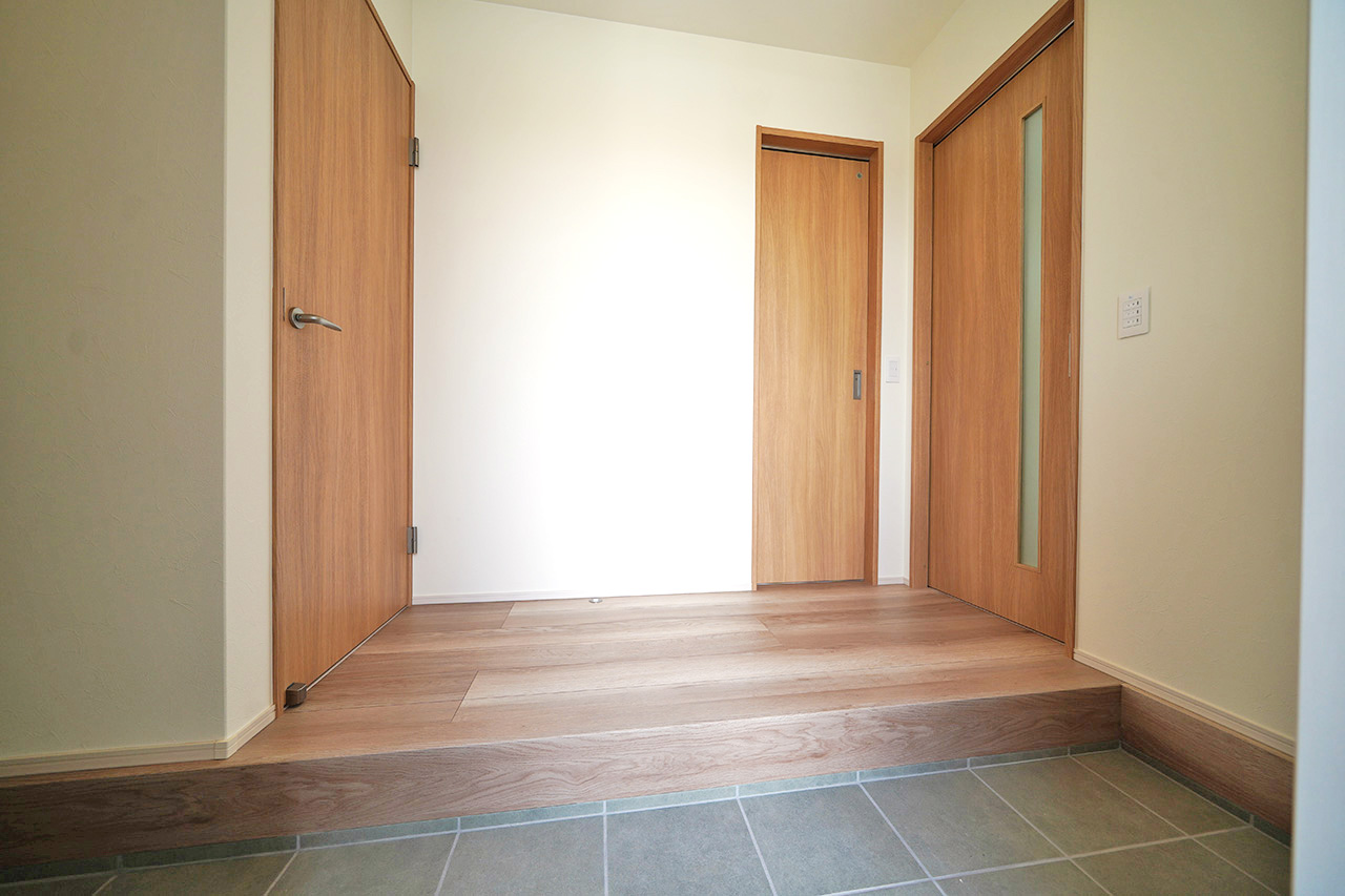 開放感たっぷりのエントランス。大容量のシューズクロークで、すっきりきれいな空間を保ちます。