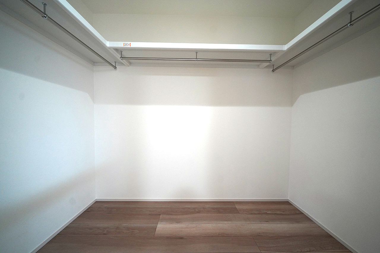3帖の広々ウォークインクロゼット。衣類や季節物もすっきりと収まる充実の収納力です。
